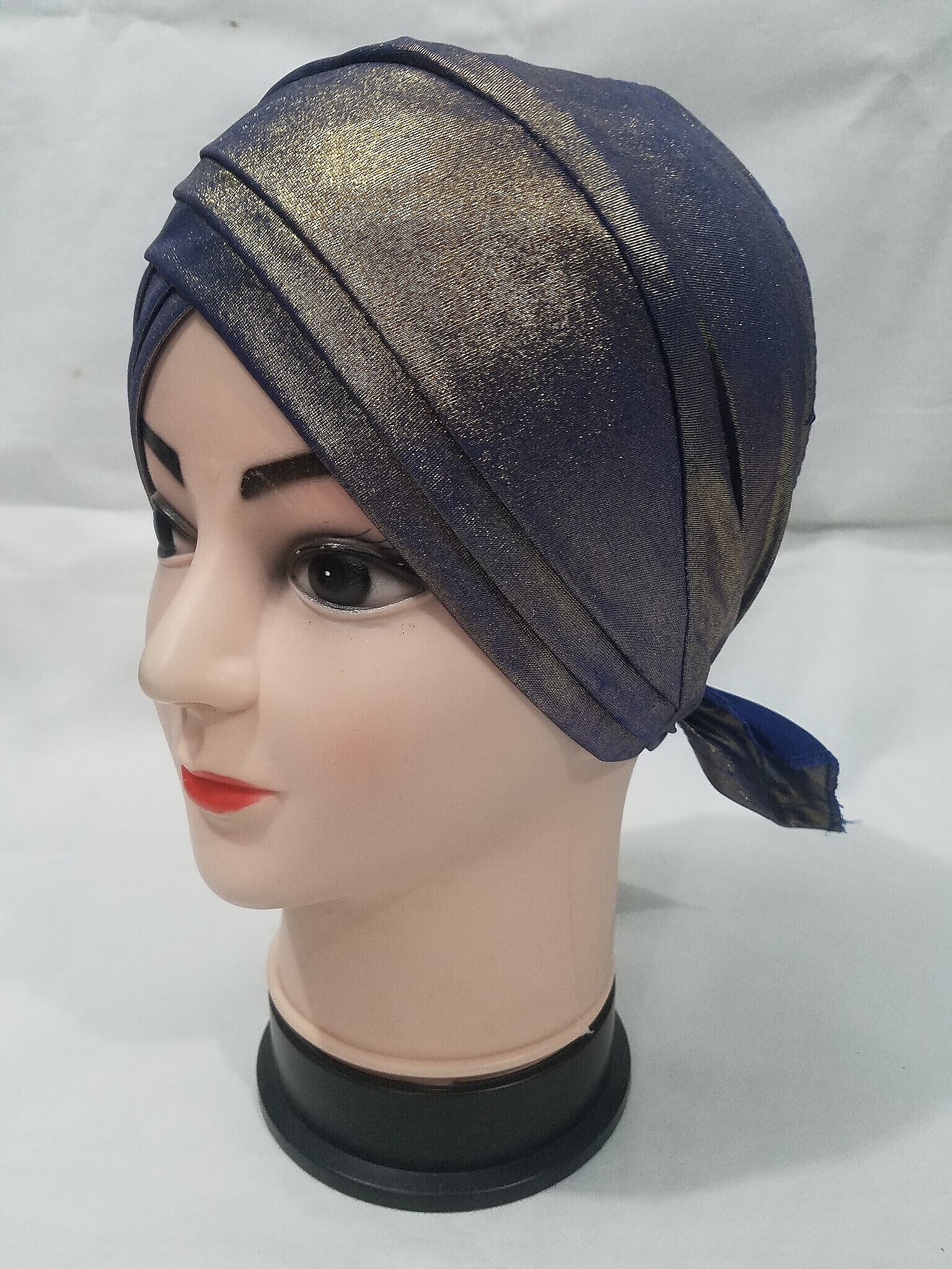 Criss Cross Shimmery Tie Back Bonnet – Navy Blue