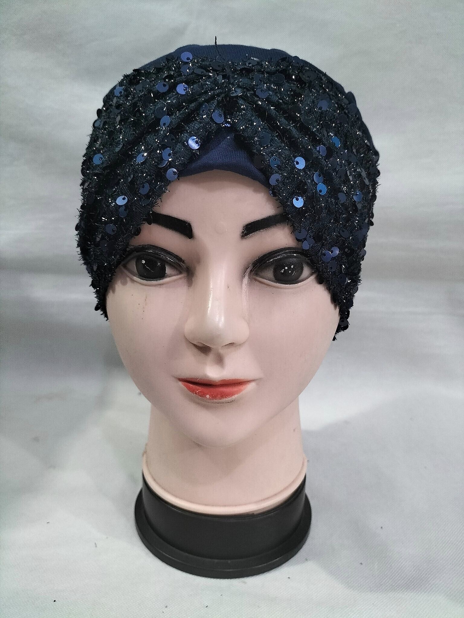Kashmiri Tie Back Bonnet with Sitare – Navy Blue