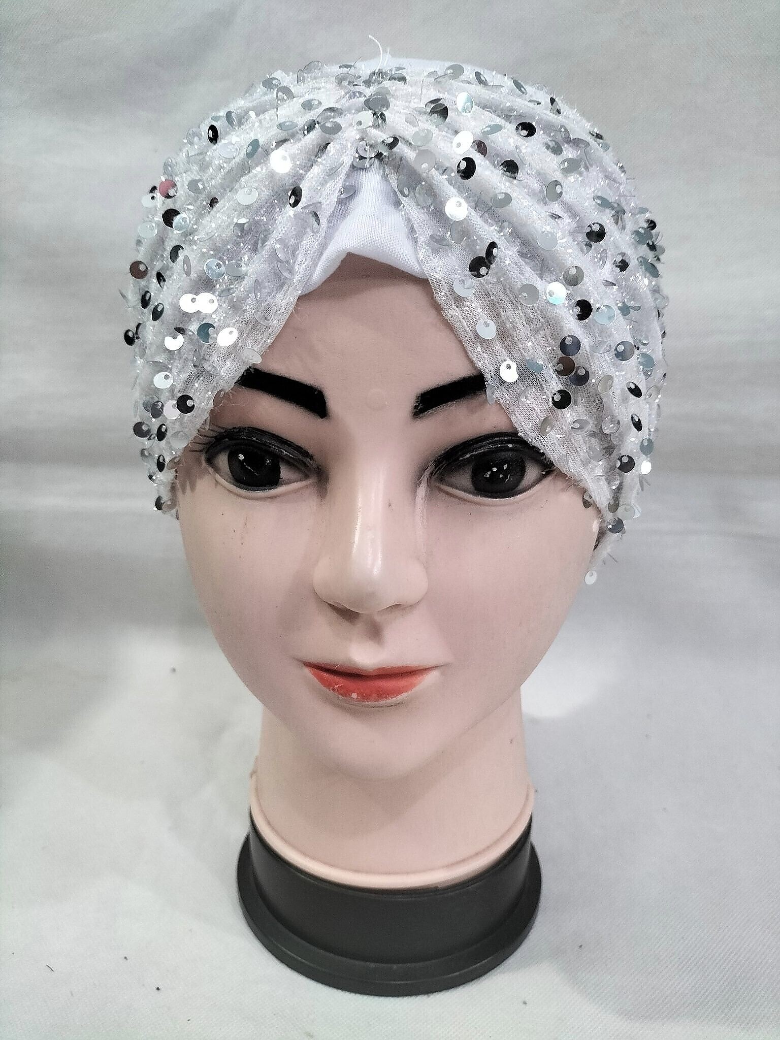 Kashmiri Tie Back Bonnet with Sitare – White