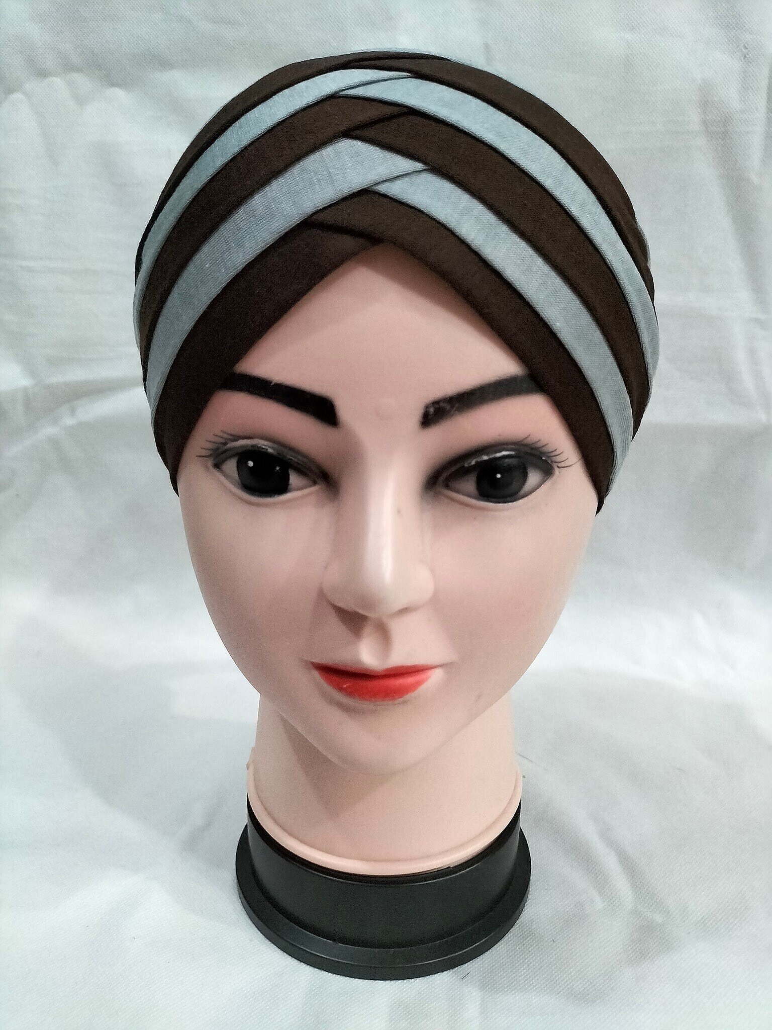Criss Cross Multi Color Tie Back Bonnet – Grey and Brown