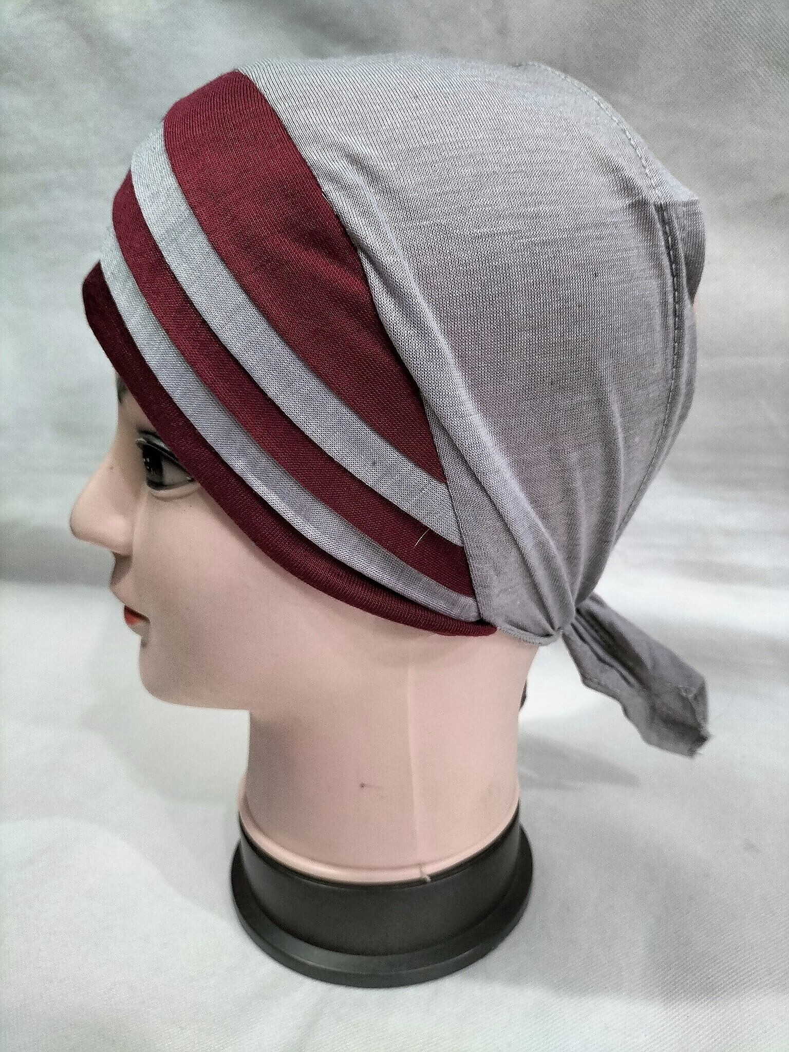 Criss Cross Multi Color Tie Back Bonnet – Grey and Maroon