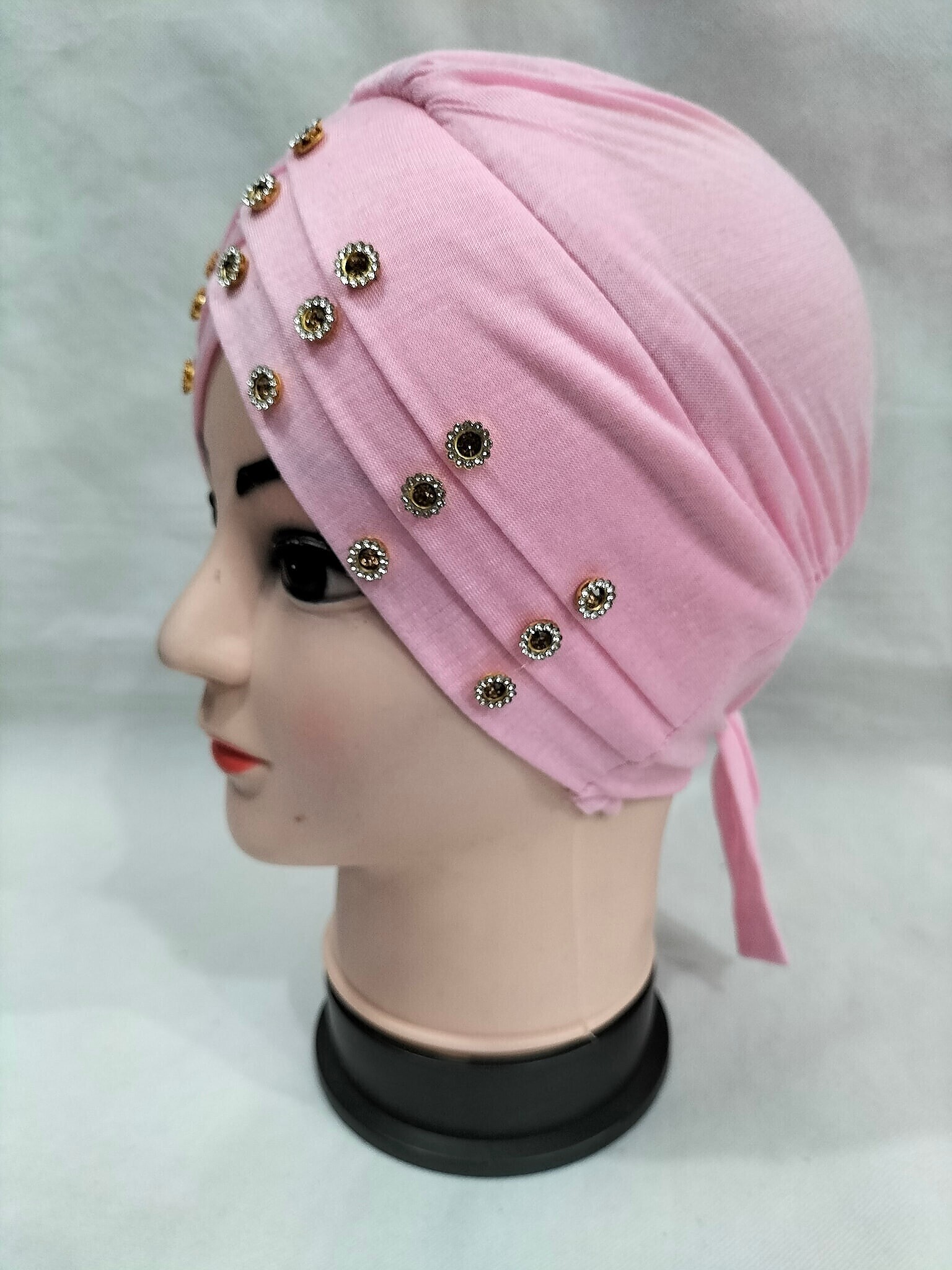 Criss Cross Tie Back Bonnet with Stones – Baby Pink