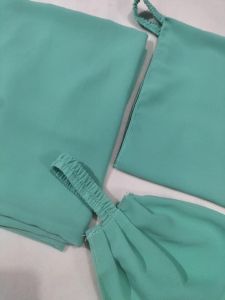 Plain Three Piece Matching Hijab Set – Cyan