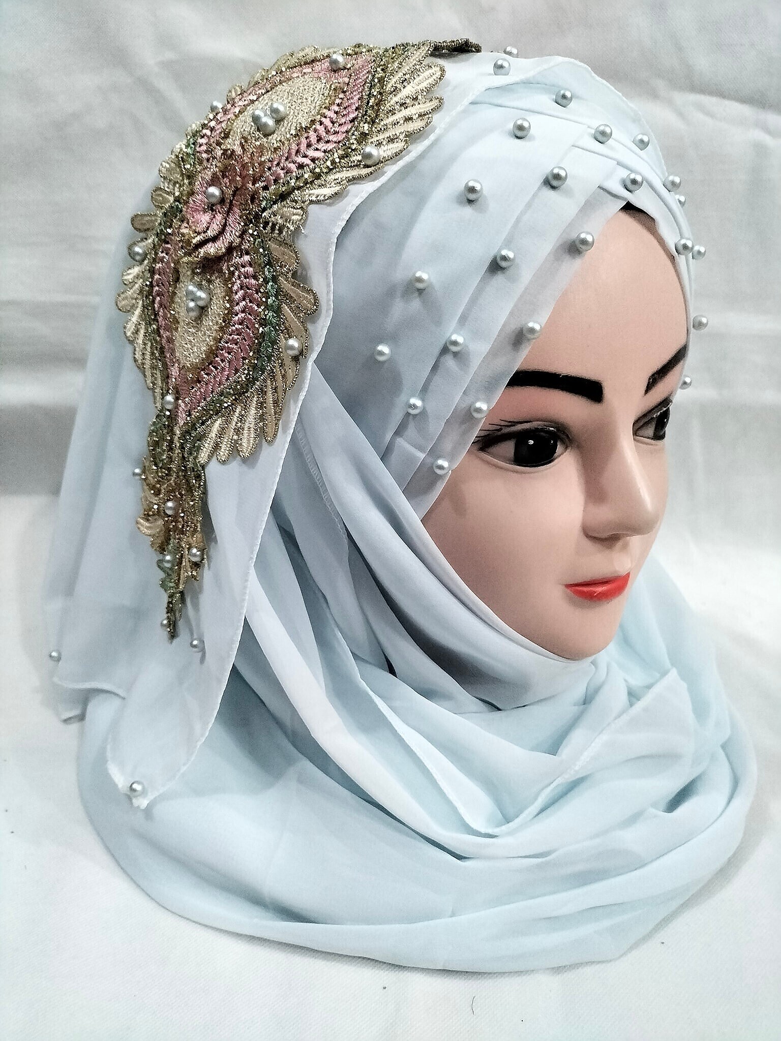 Bridal Pearl Ready to Wear with Bunch – Baby Blue