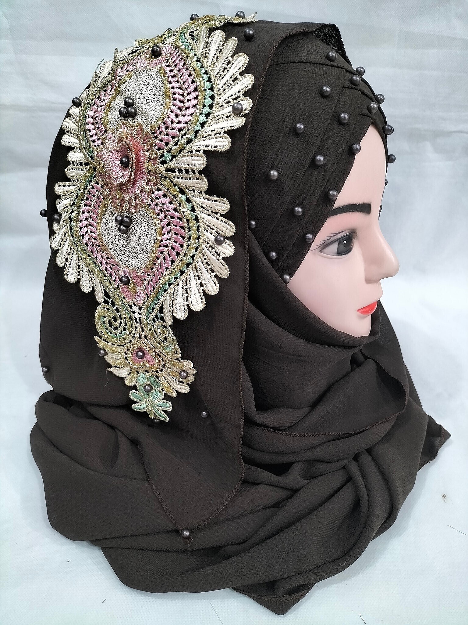 Bridal Pearl Ready to Wear with Bunch – Dark Brown
