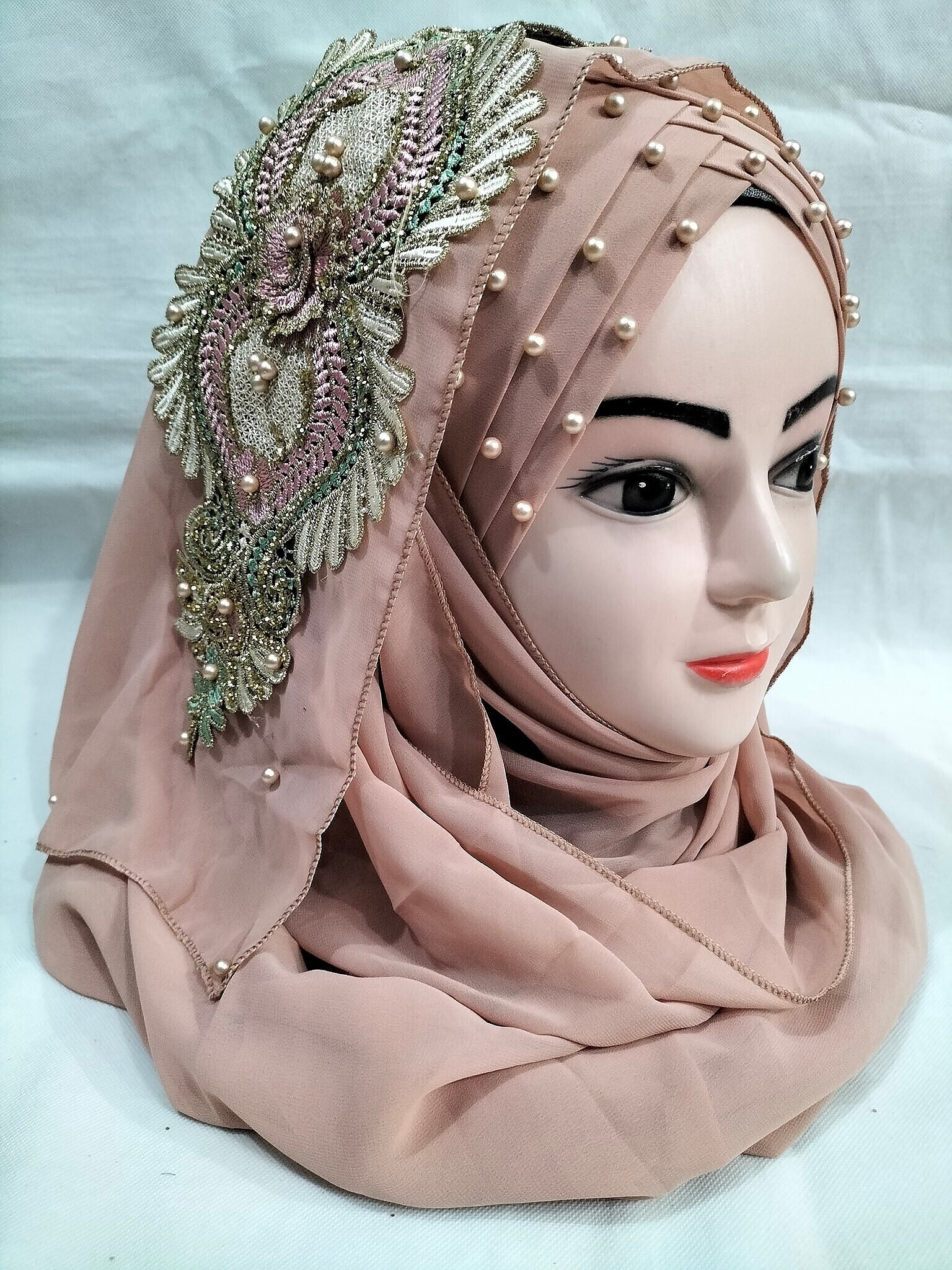 Bridal Pearl Ready to Wear with Bunch – Nude Brown