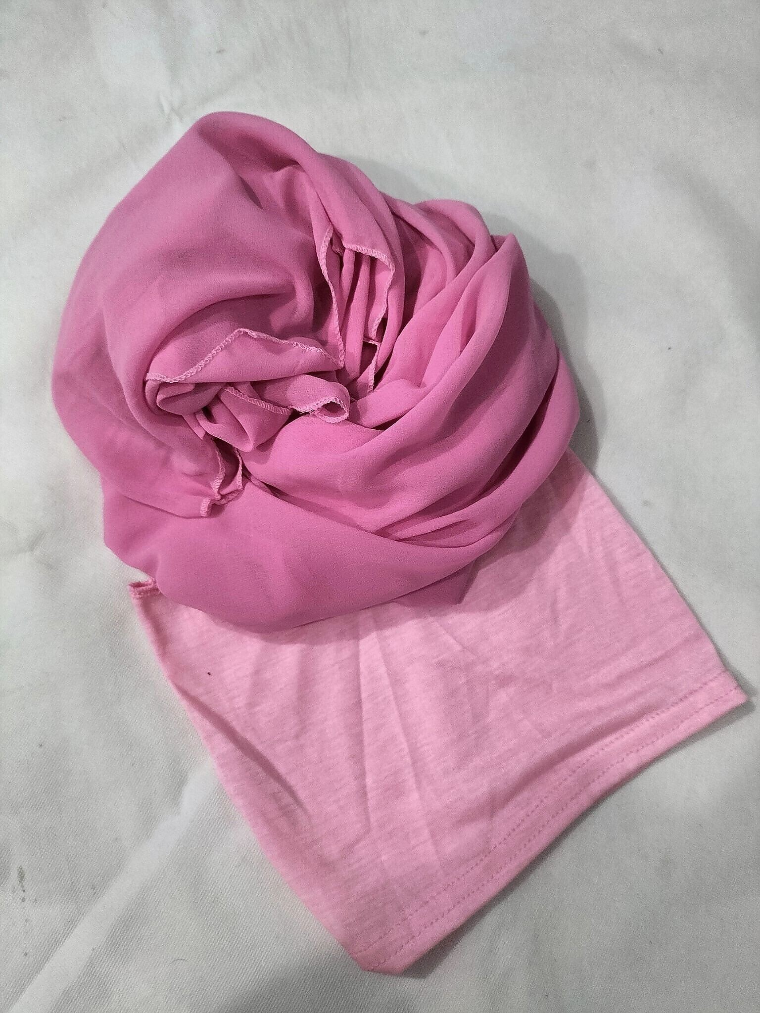 Chiffon Ready to Wear Hijab with Stitched Cap – Pink