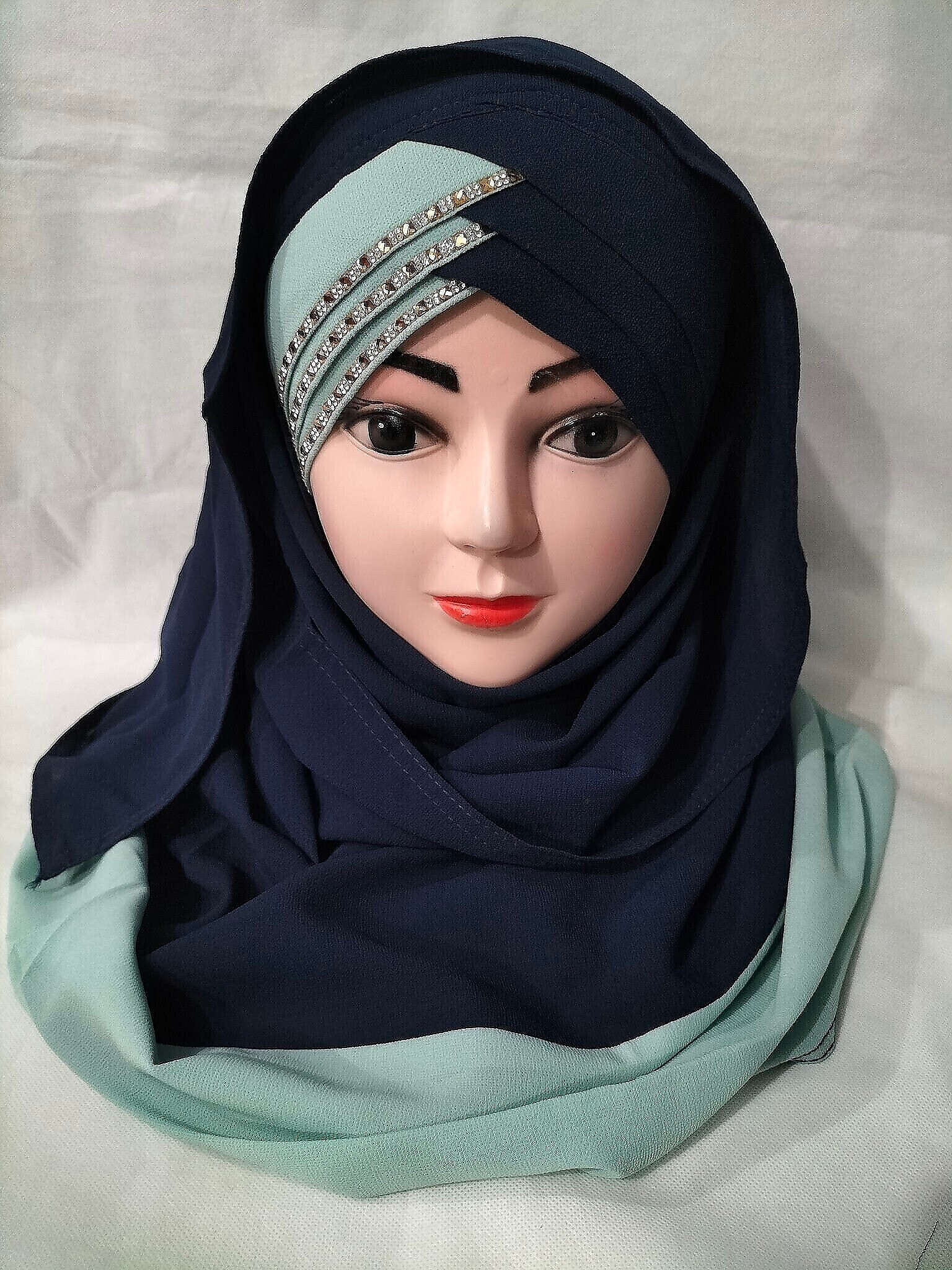 Criss Cross Ready to Wear with Stones – Navy Blue and Mint Green