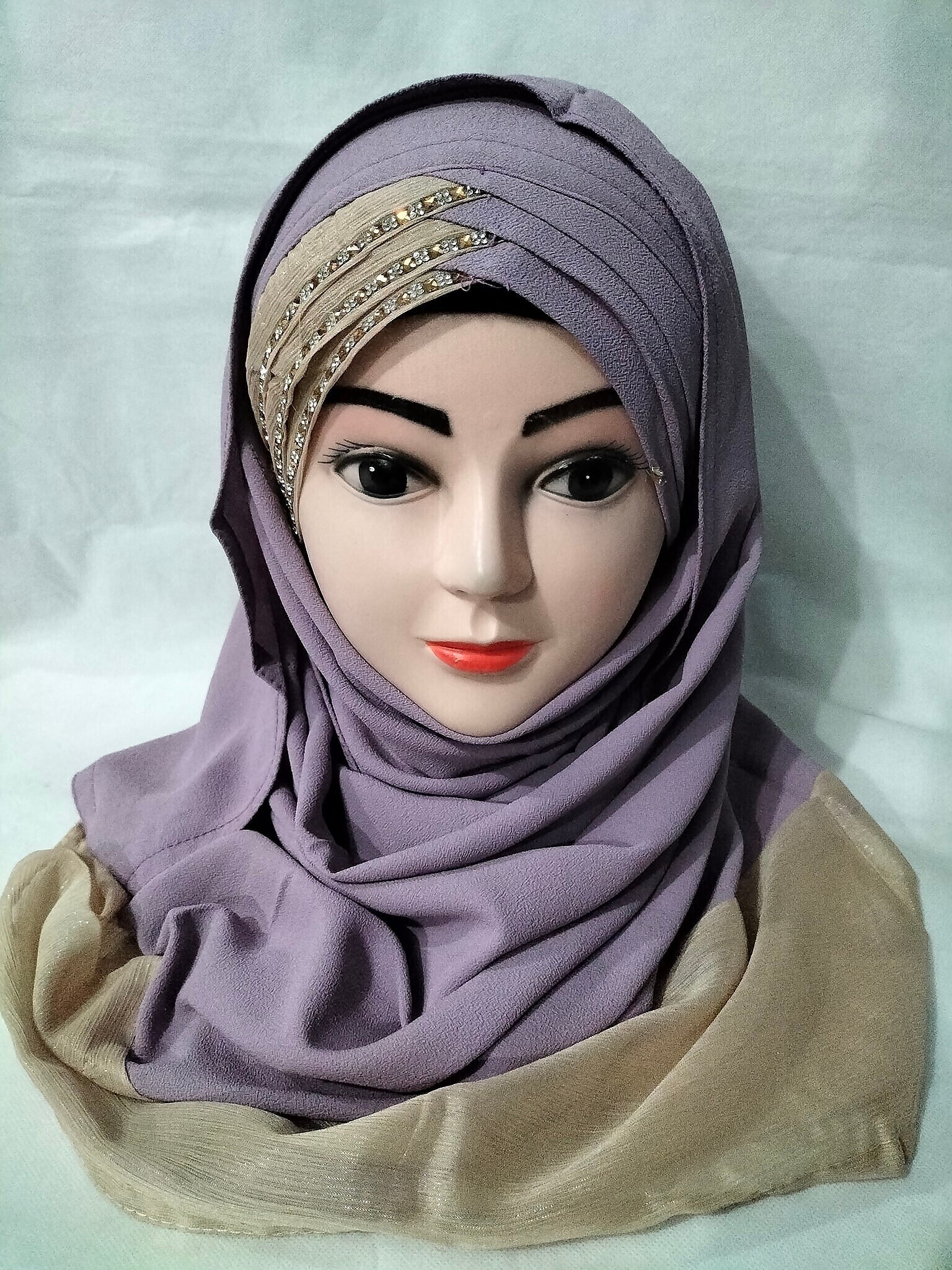 Criss Cross Ready to Wear with Stones – Purple and Golden
