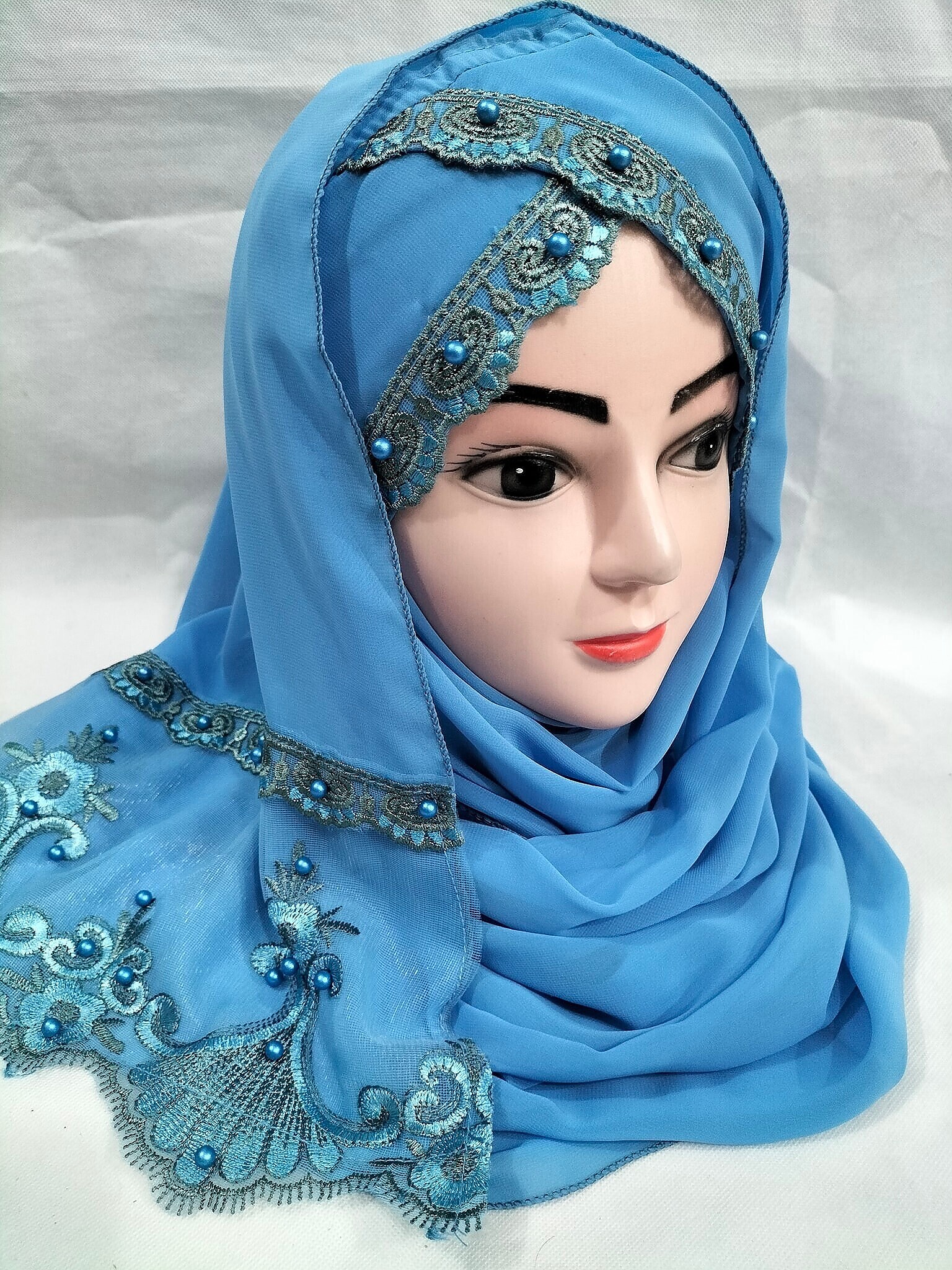 Embroidered Ready to Wear Hijab – Fountain Blue