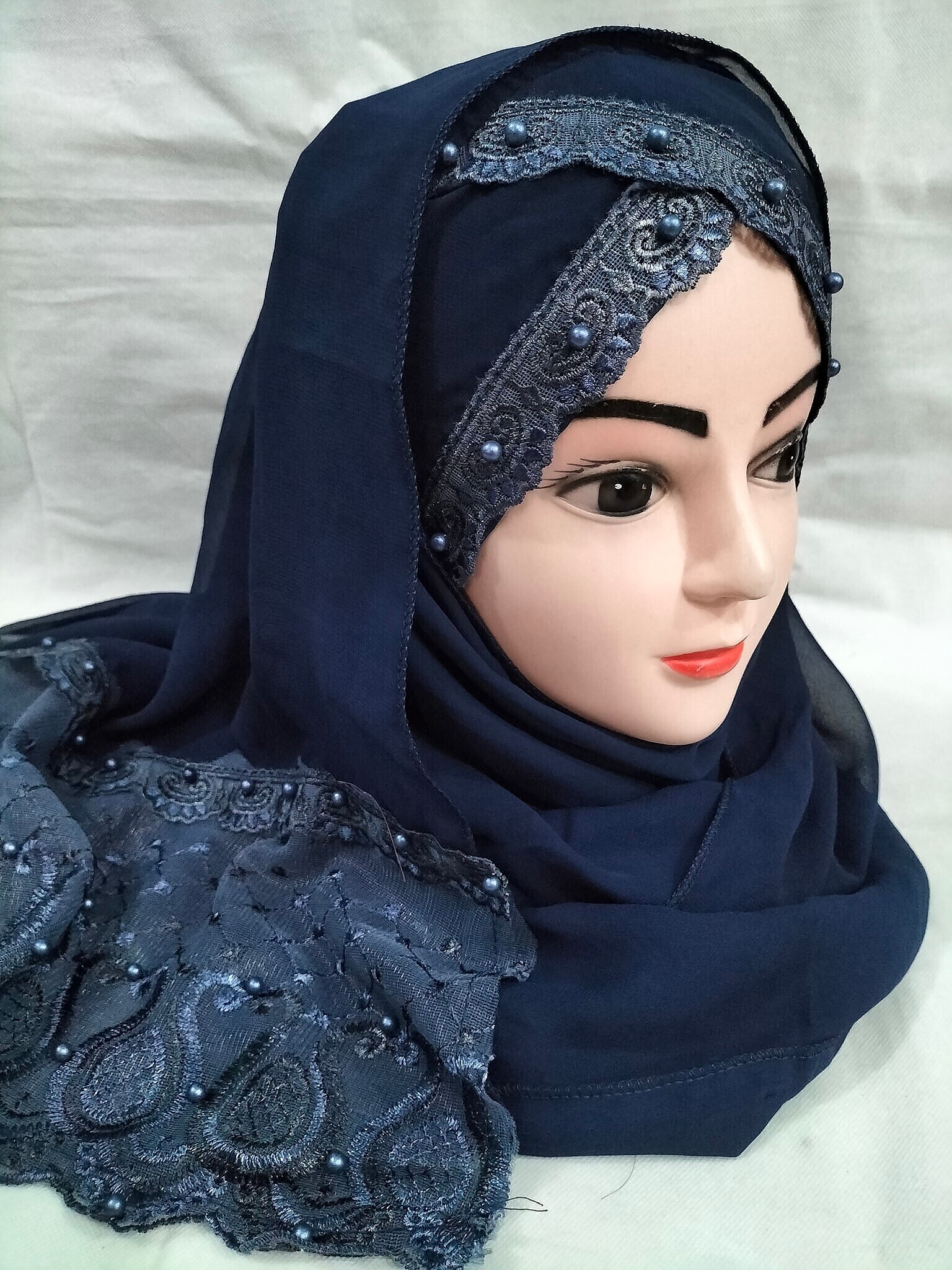 Embroidered Ready to Wear Hijab – Navy Blue 2