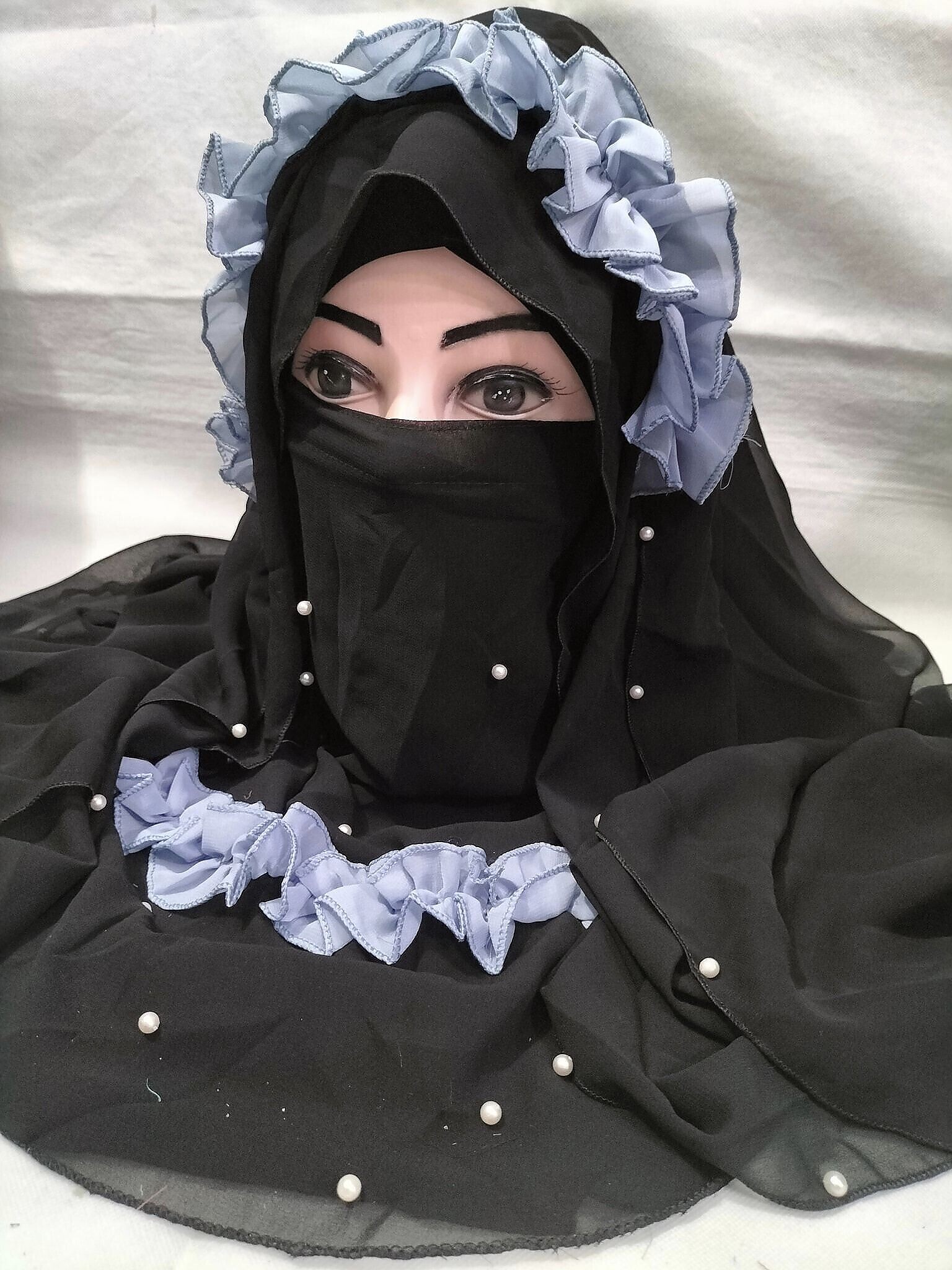 Fancy Crown with Niqab Ready to Wear – Baby Blue
