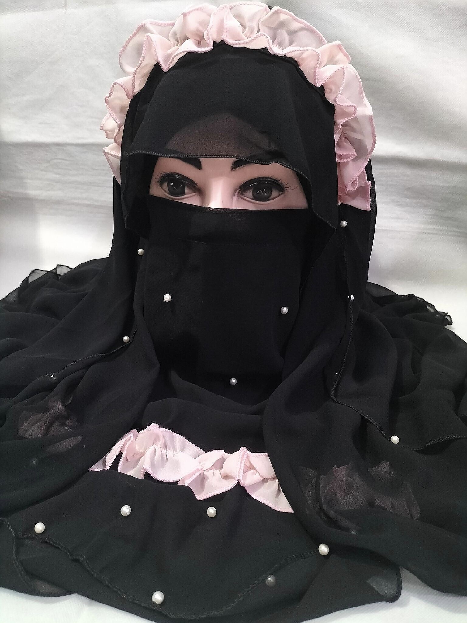 Fancy Crown with Niqab Ready to Wear – Baby Pink