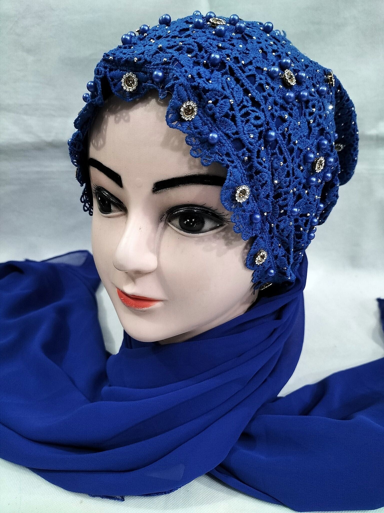 Fancy Tie Back Bonnet Ready to Wear – Blue
