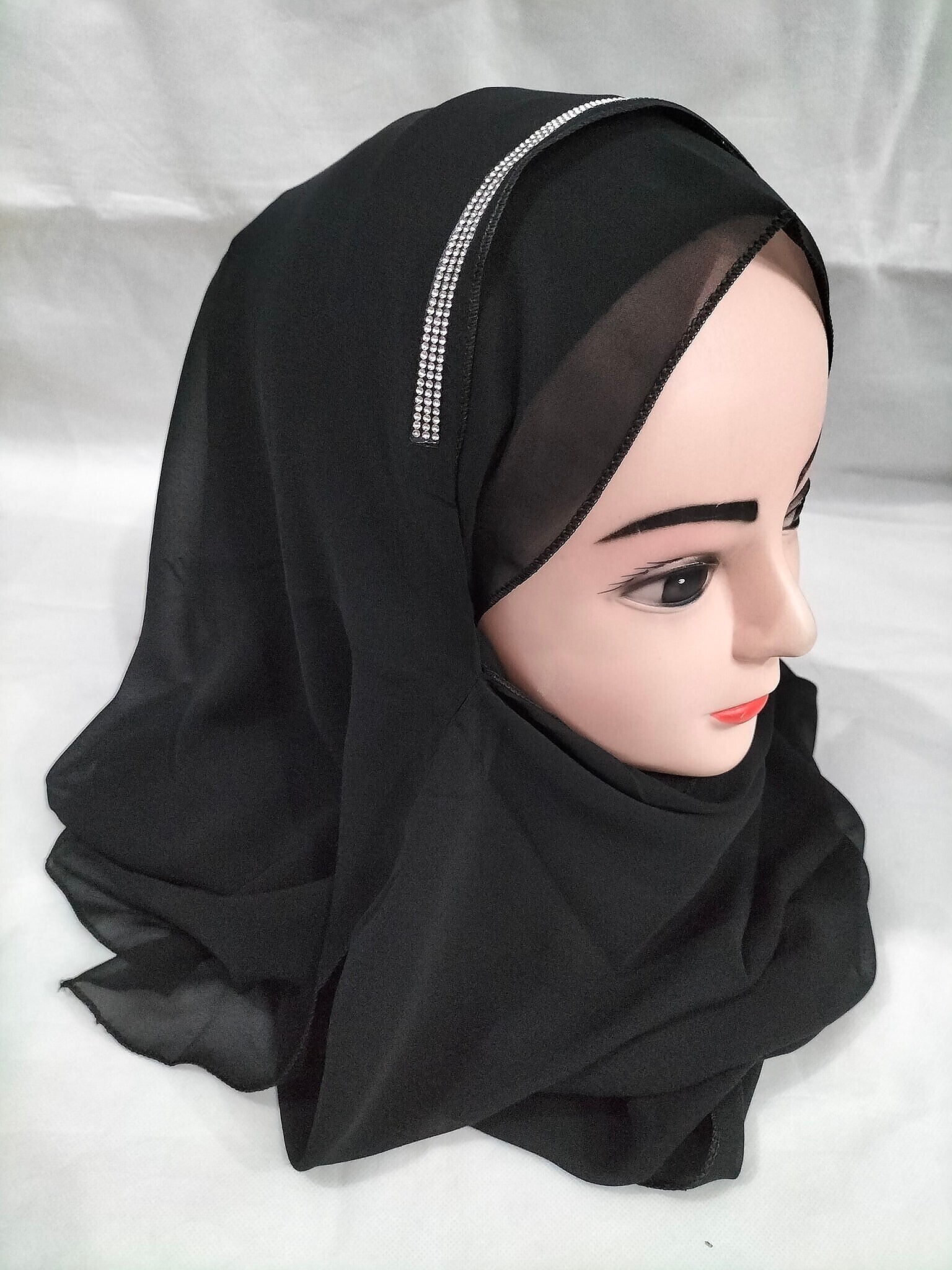 Fancy Two Loops Chiffon Instant Hijab – Black
