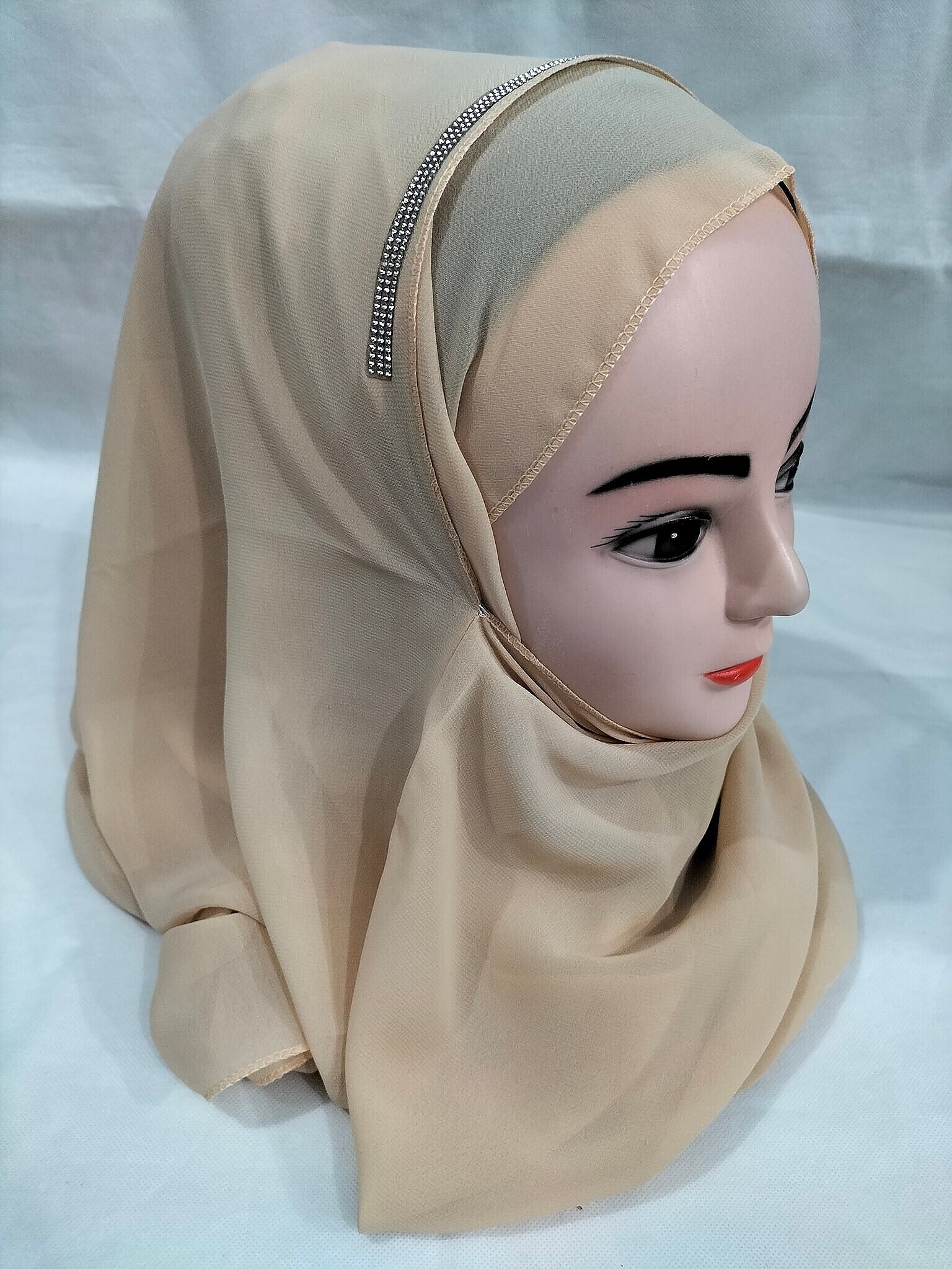 Fancy Two Loops Chiffon Instant Hijab – Fawn