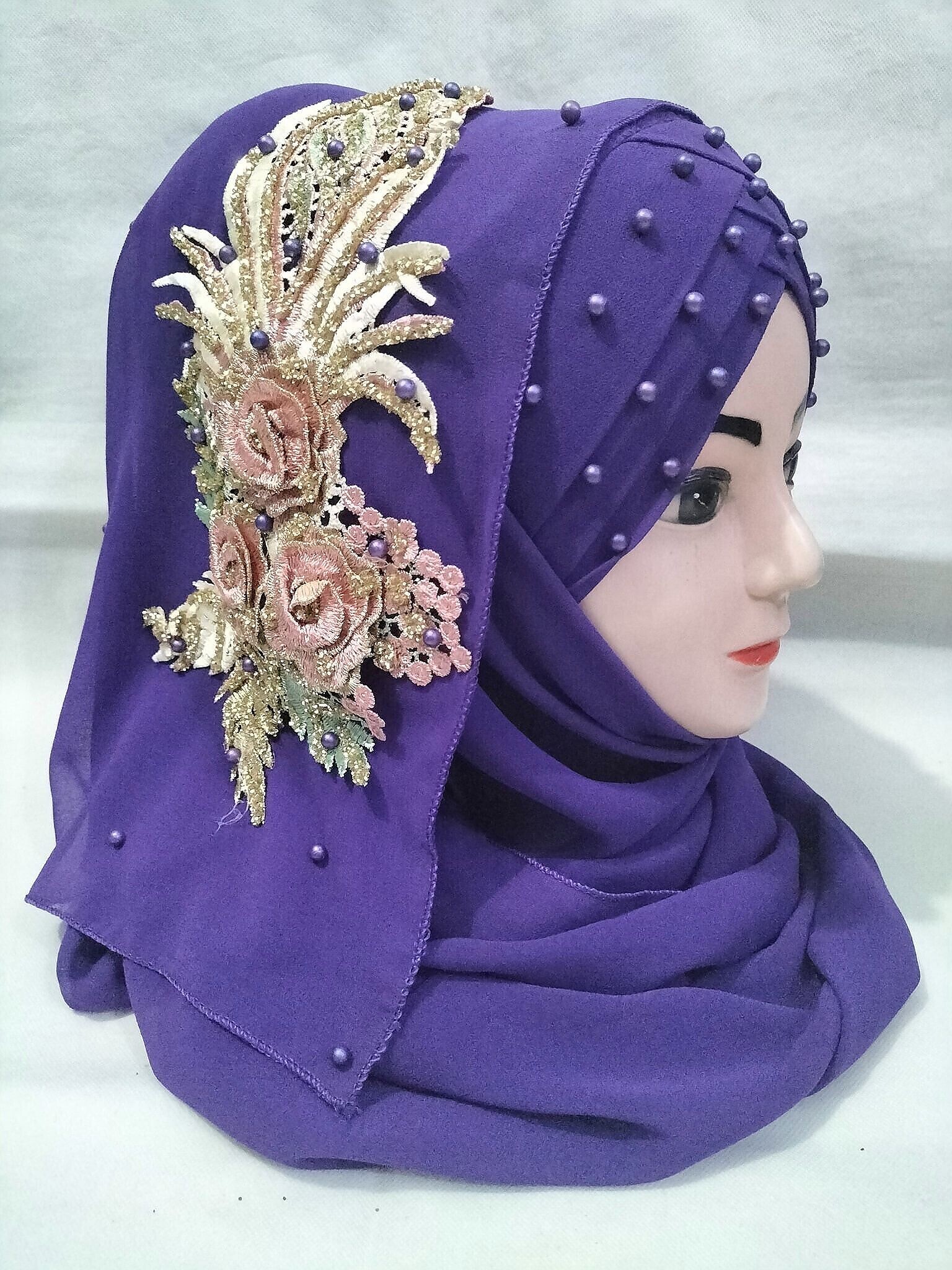 Pearl Floral Ready to Wear with 3D Bridal Bunch – Brinjal