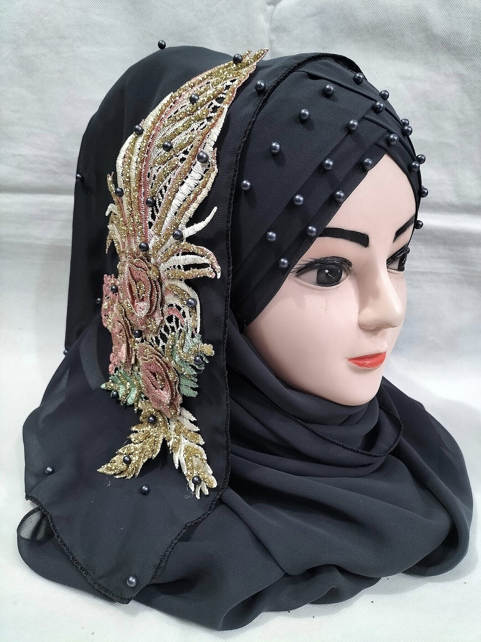 Pearl Floral Ready to Wear with 3D Bridal Bunch – Dark Grey