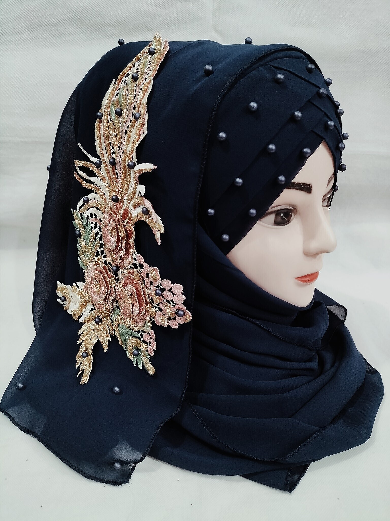 Pearl Floral Ready to Wear with 3D Bridal Bunch – Dark Navy Blue