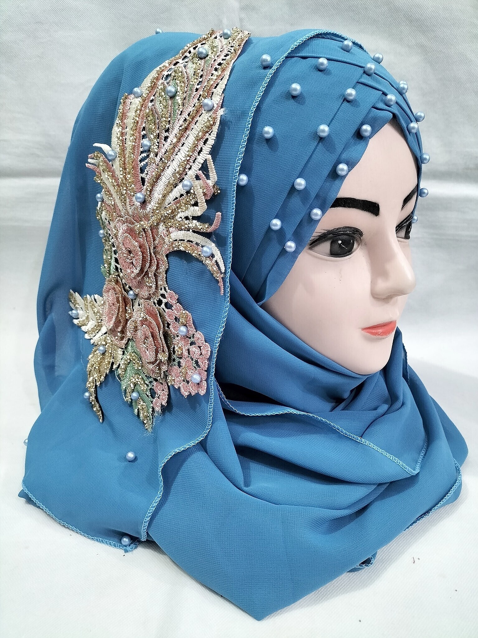 Pearl Floral Ready to Wear with 3D Bridal Bunch – Steel Blue