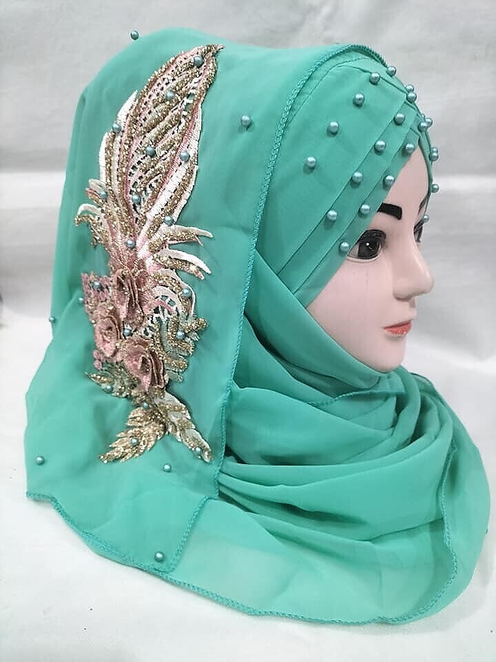 Pearl Floral Ready to Wear with 3D Bridal Bunch – Turquoise