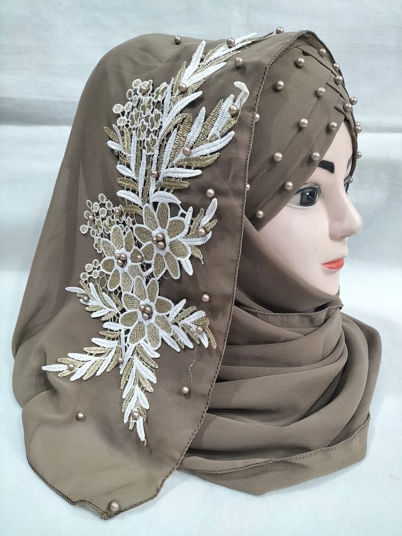 Pearl Floral Ready to Wear with 3D Bunch – Coffee Brown
