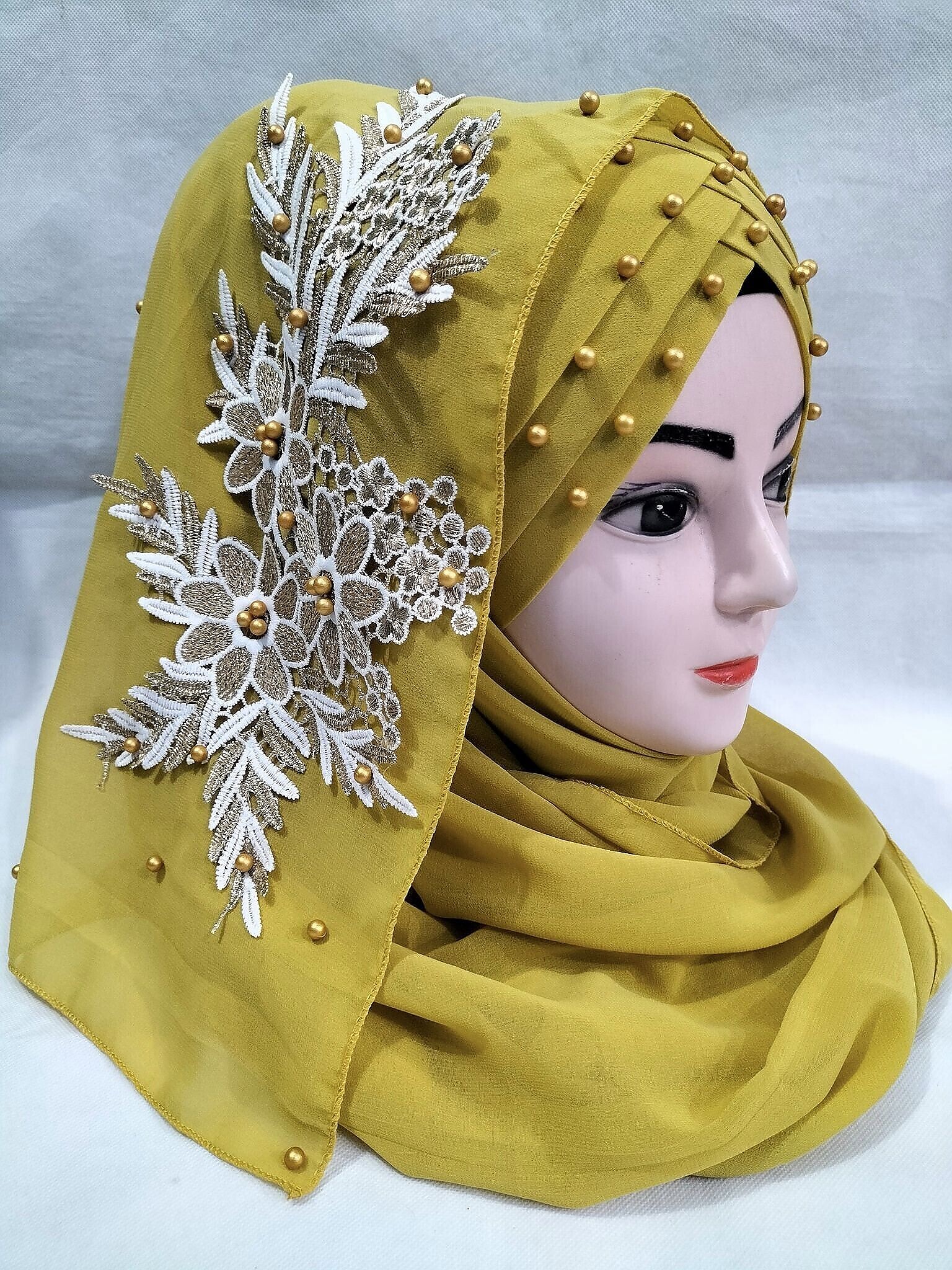 Pearl Floral Ready to Wear with 3D Bunch – Mustard