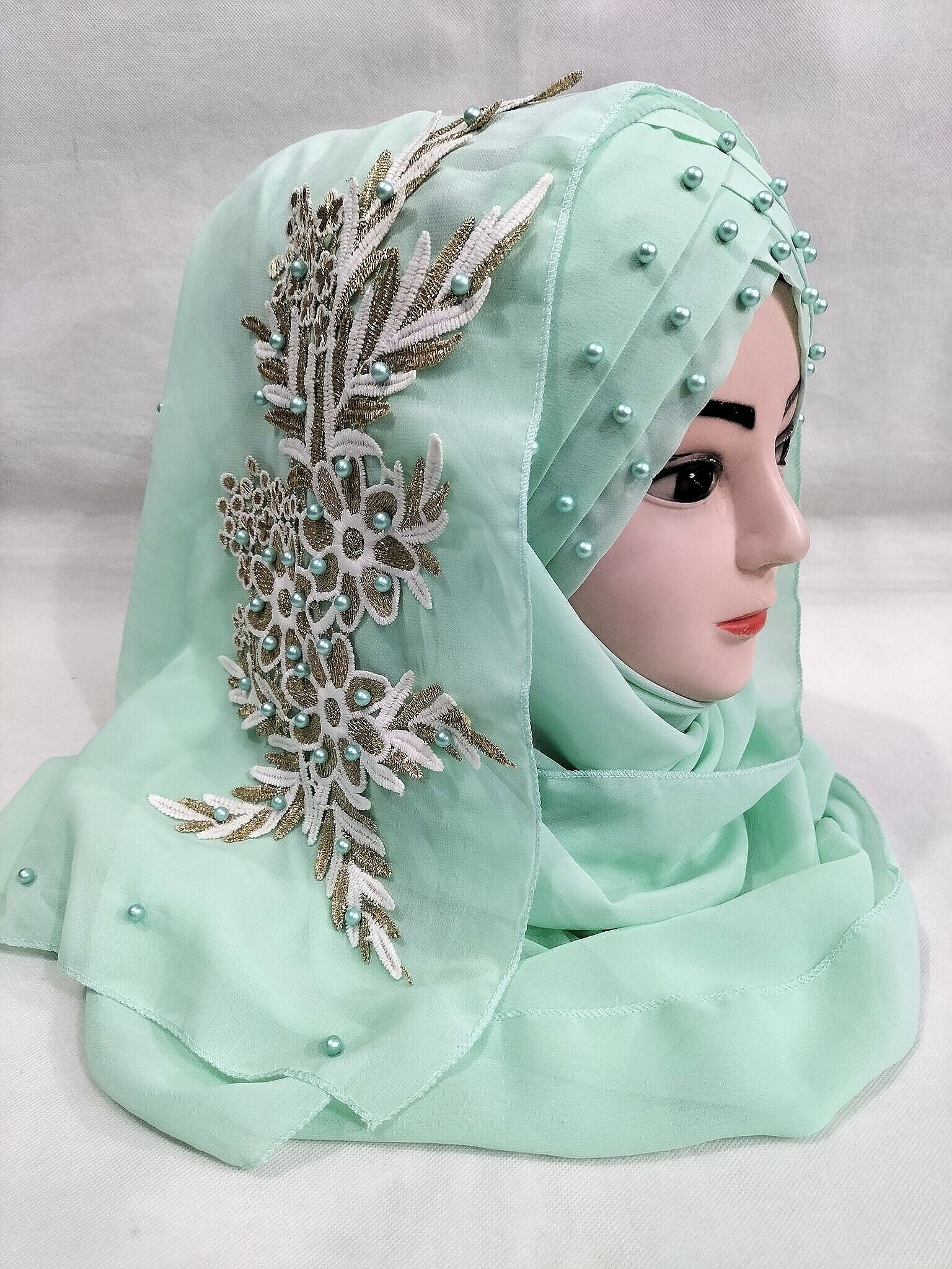 Pearl Floral Ready to Wear with 3D Bunch – Pistachio Green