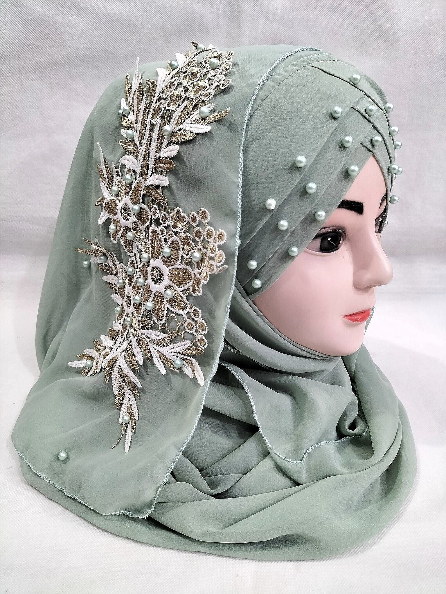 Pearl Floral Ready to Wear with 3D Bunch – Tea Green