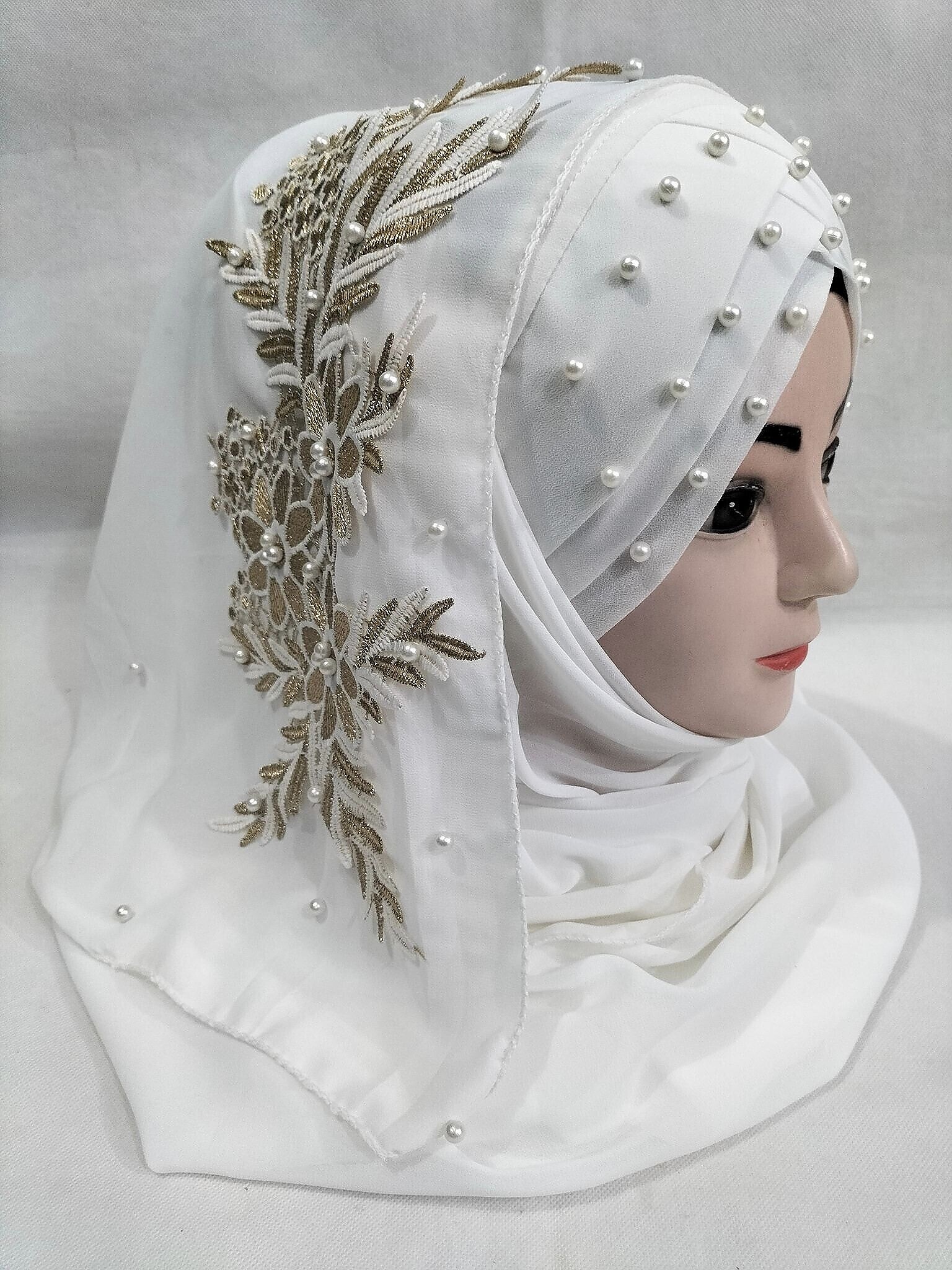 Pearl Floral Ready to Wear with 3D Bunch – White
