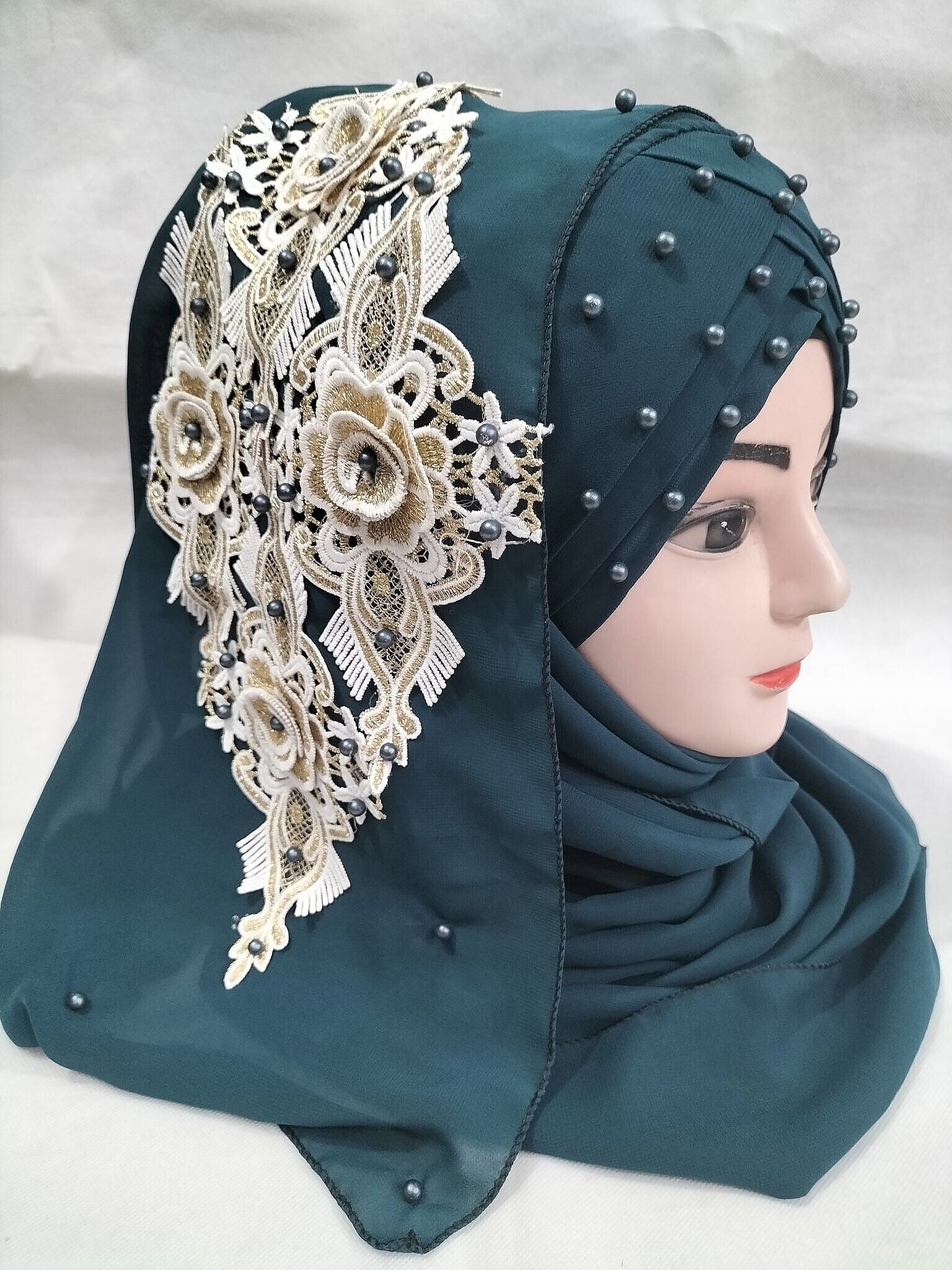 Pearl Floral Ready to Wear with 3D Fancy Bunch – Dark Teal