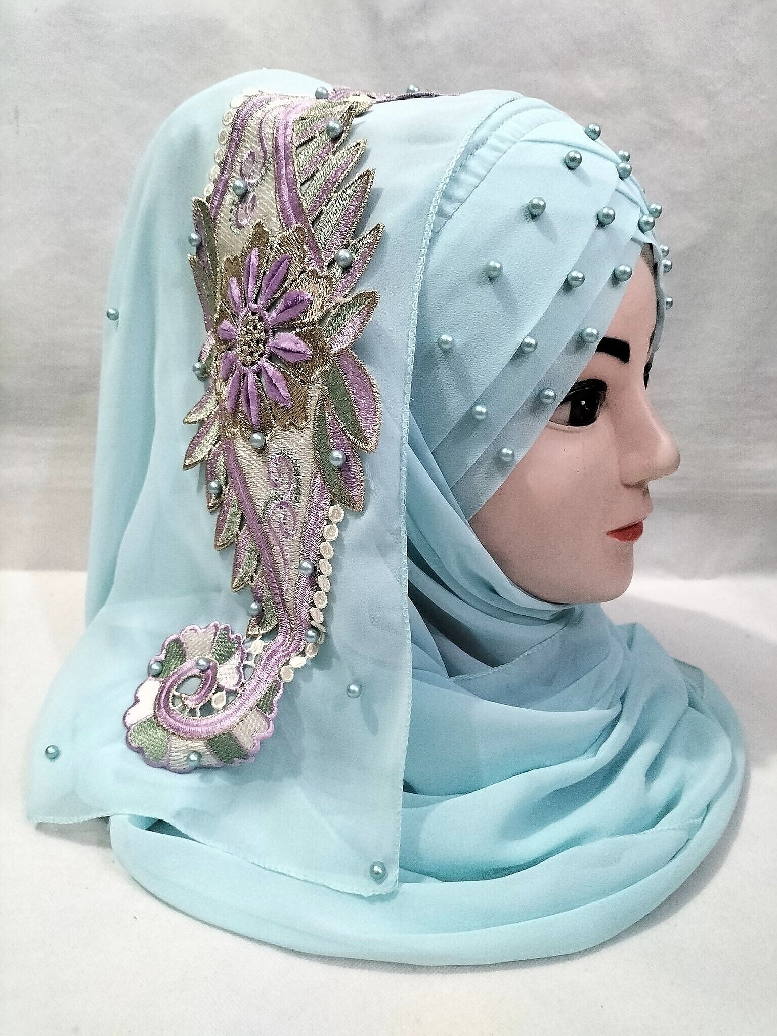 Pearl Floral Ready to Wear with 3D Fancy Flower Bunch – Baby Blue (Design 1)