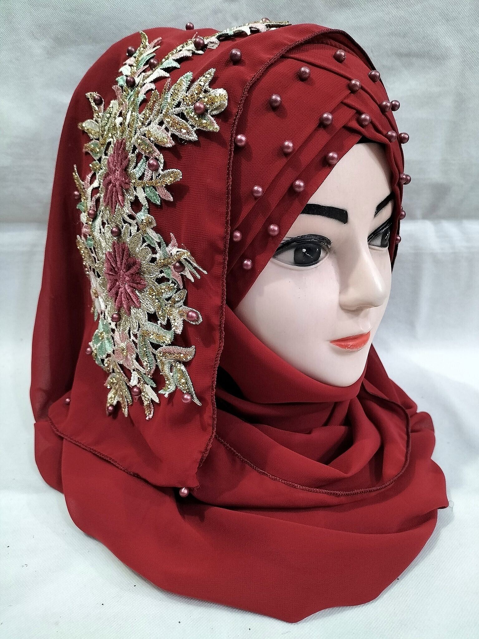 Pearl Floral Ready to Wear with 3D Fancy Flower Bunch – Maroon