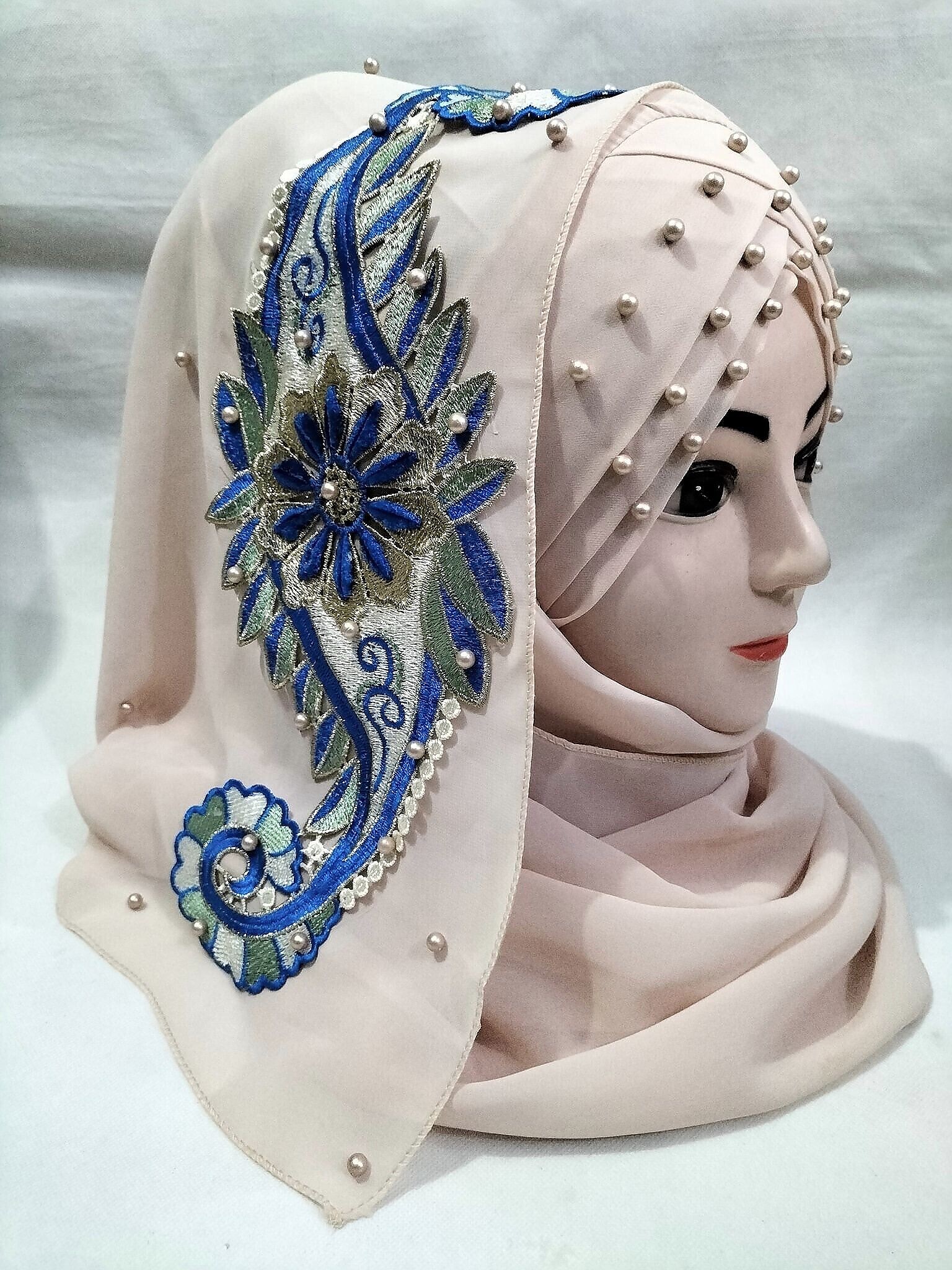 Pearl Floral Ready to Wear with 3D Fancy Flower Bunch – Nude Pink (Design 3)