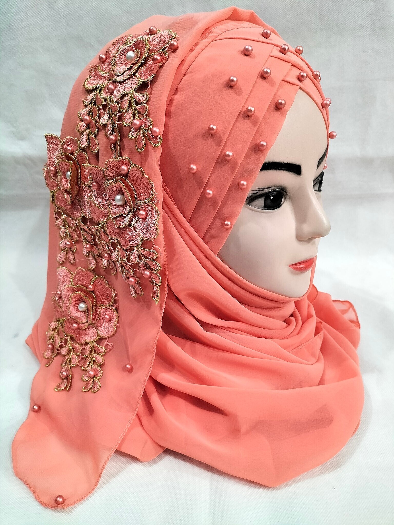 Pearl Floral Ready to Wear with Fancy Bunch – Coral Orange