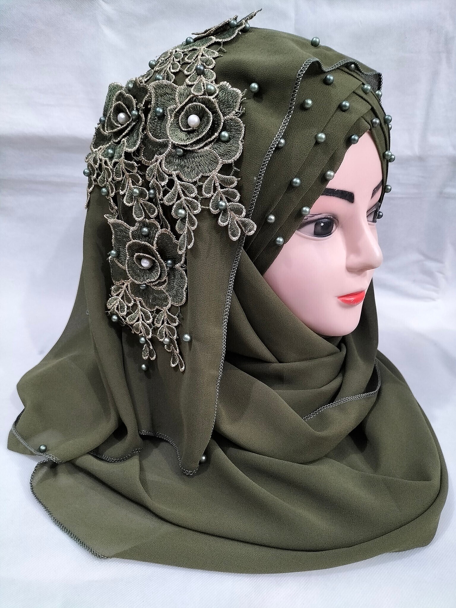 Pearl Floral Ready to Wear with Fancy Bunch – Mehndi Color