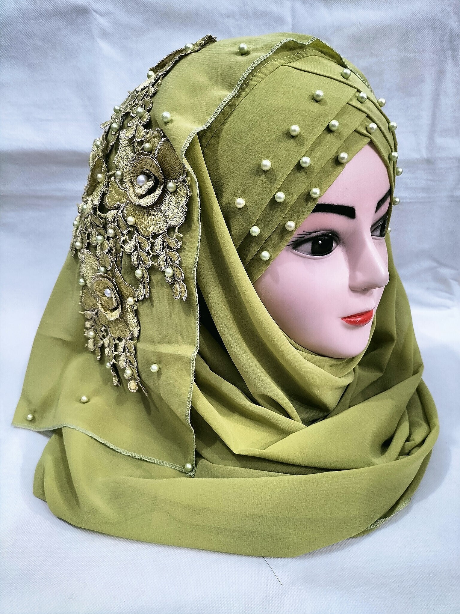 Pearl Floral Ready to Wear with Fancy Bunch – Olive Green