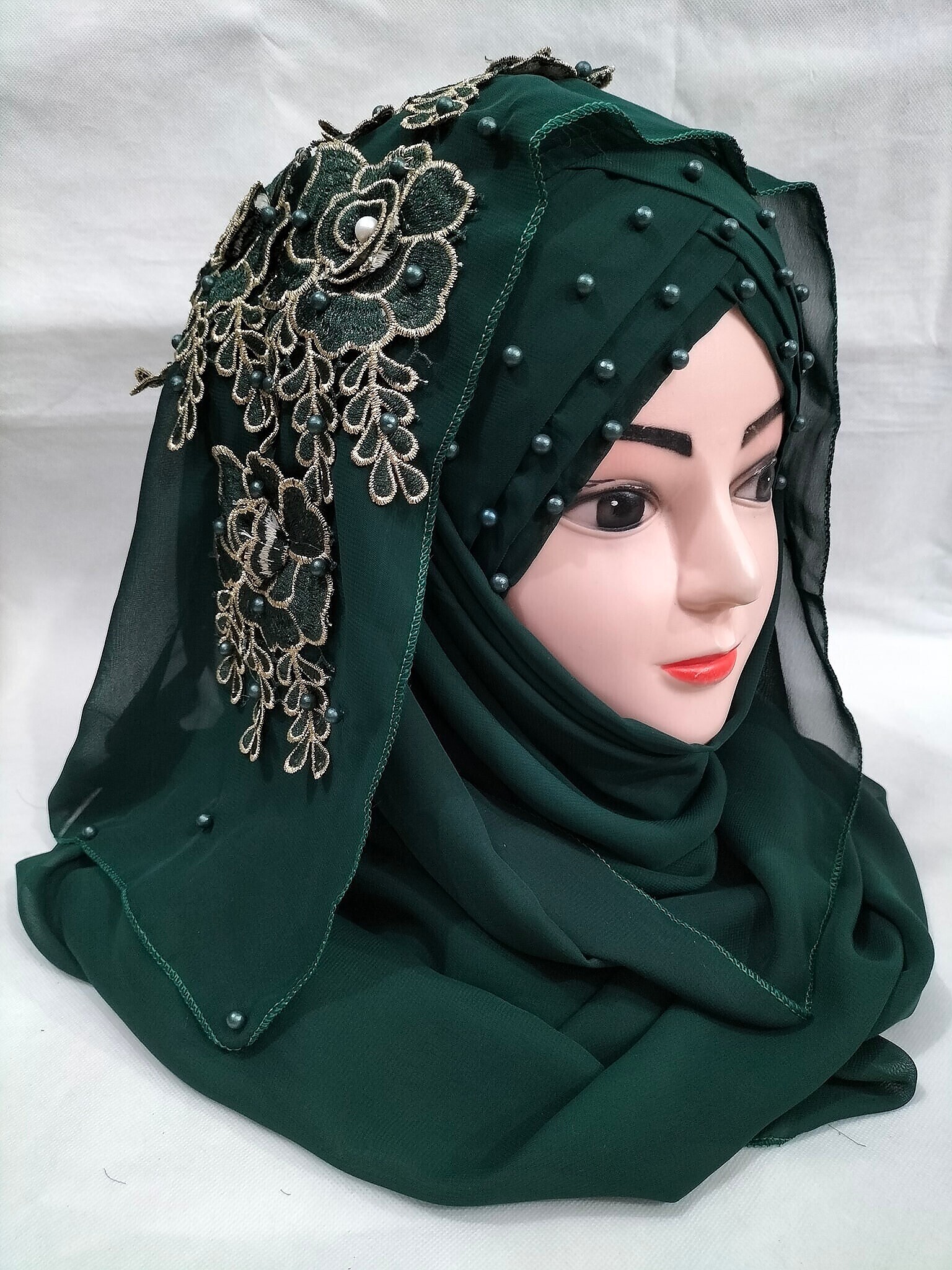 Pearl Floral Ready to Wear with Fancy Bunch – Sea Green