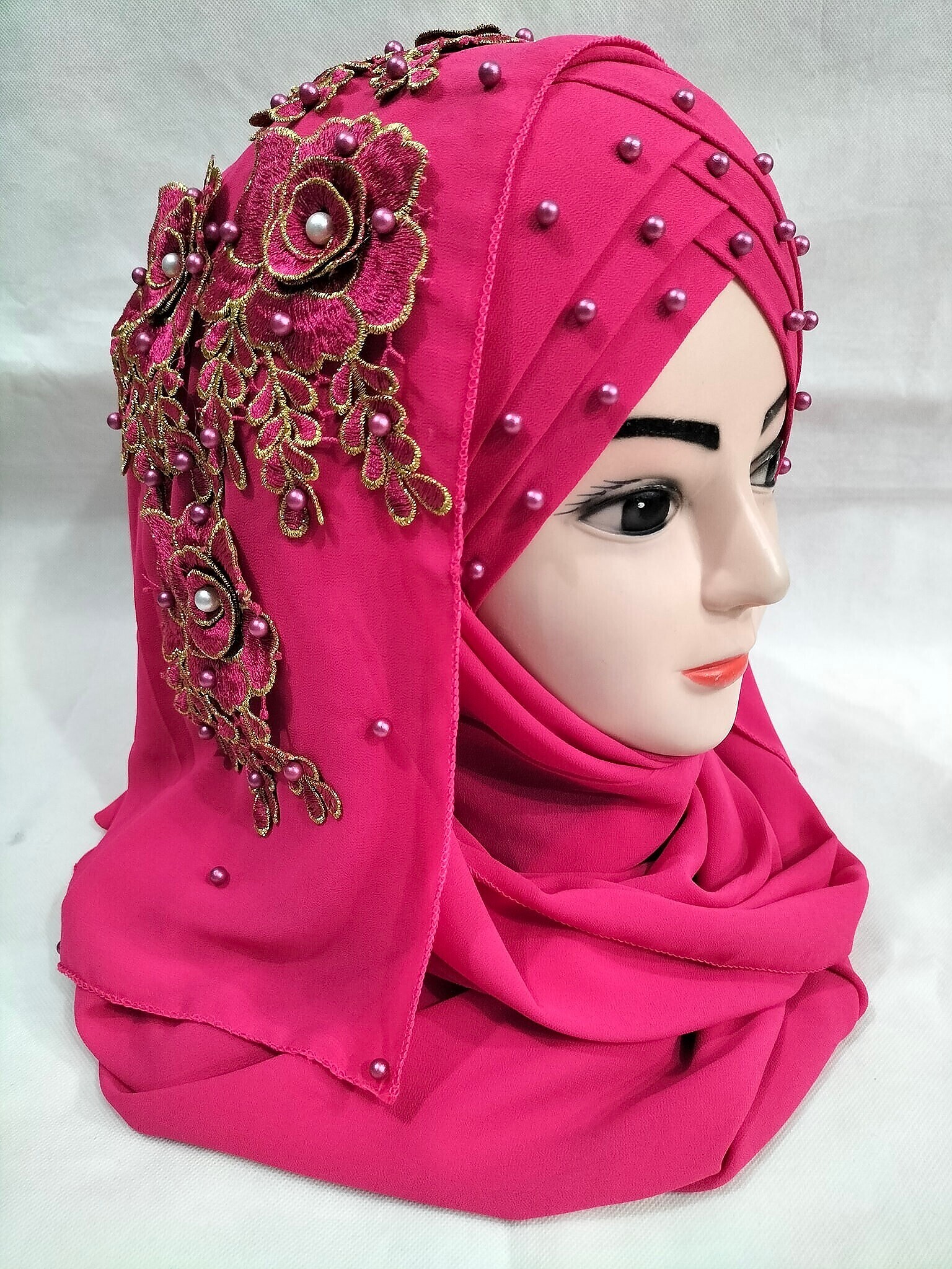 Pearl Floral Ready to Wear with Fancy Bunch – Shocking Pink