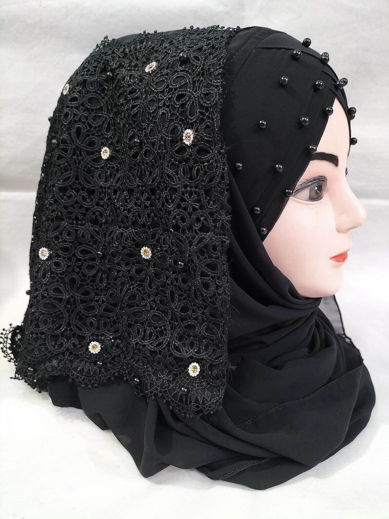 Pearl Floral Ready to Wear with Lace Edge – Black