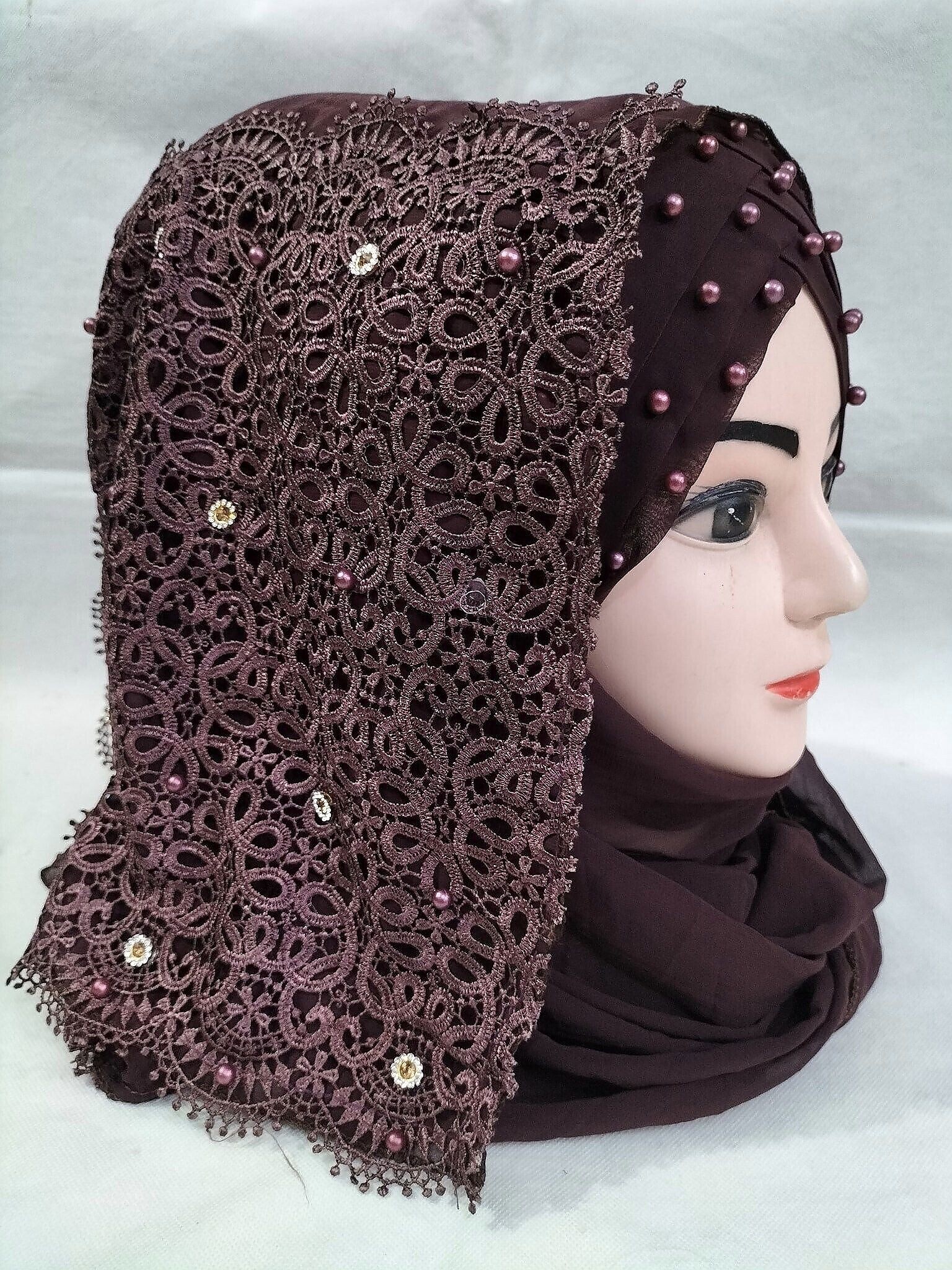 Pearl Floral Ready to Wear with Lace Edge – Reddish Brown