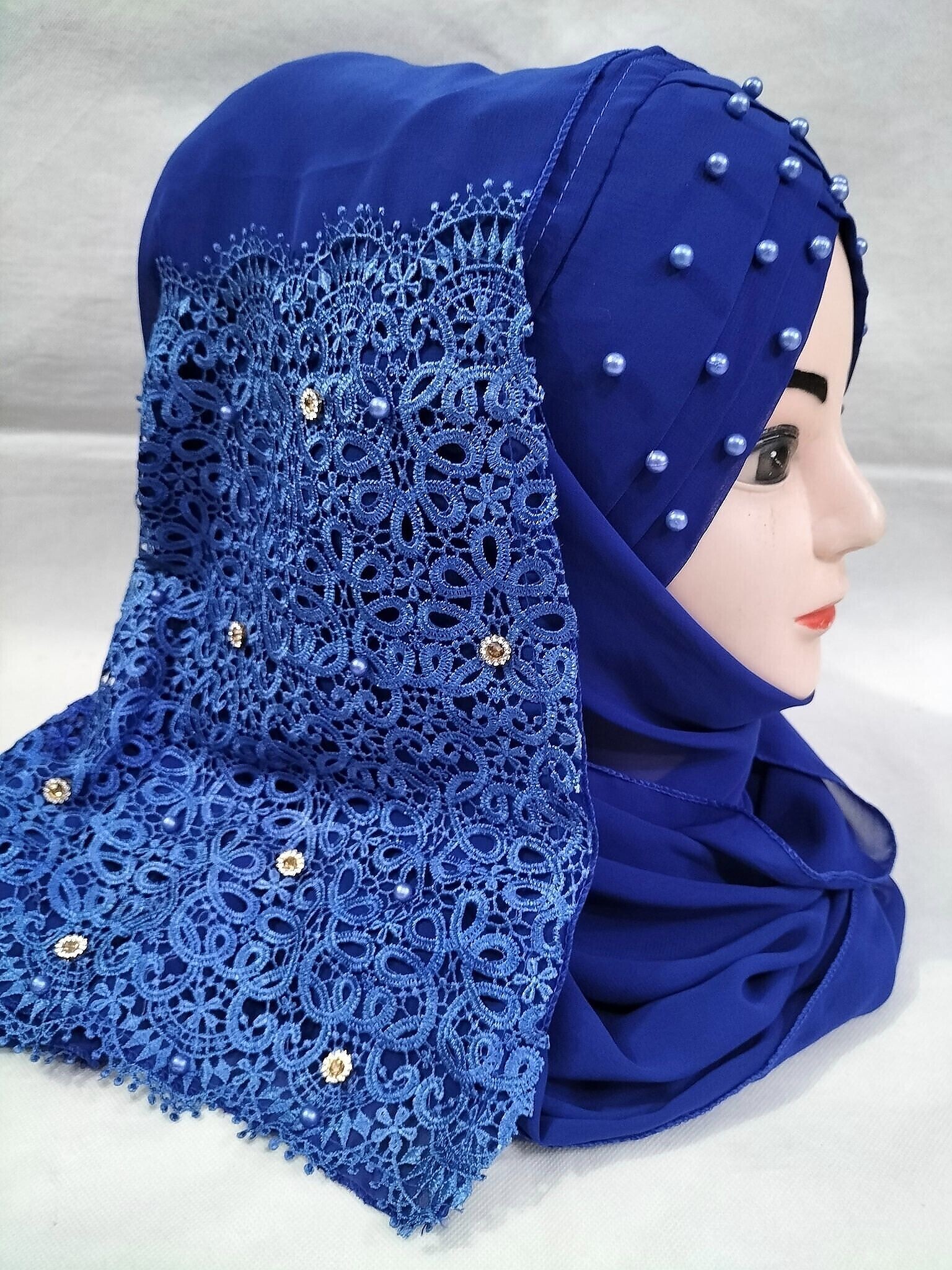 Pearl Floral Ready to Wear with Lace Edge – Royal Blue