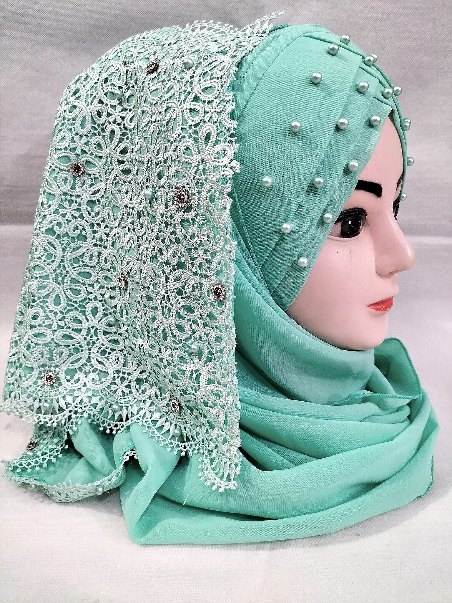 Pearl Floral Ready to Wear with Lace Edge – Turquiose