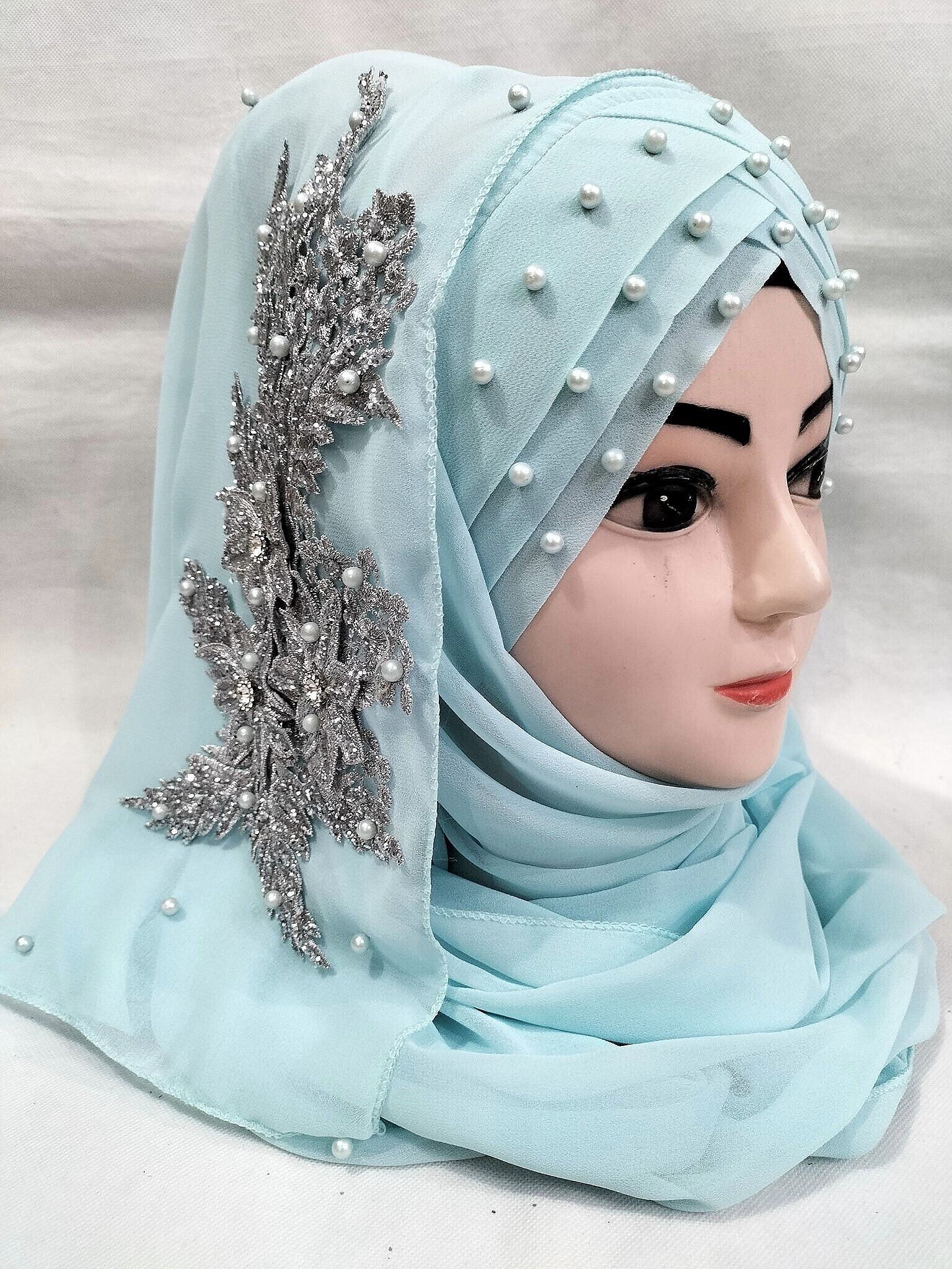 Pearl Floral Ready to Wear with Silver Bunch – Baby Blue