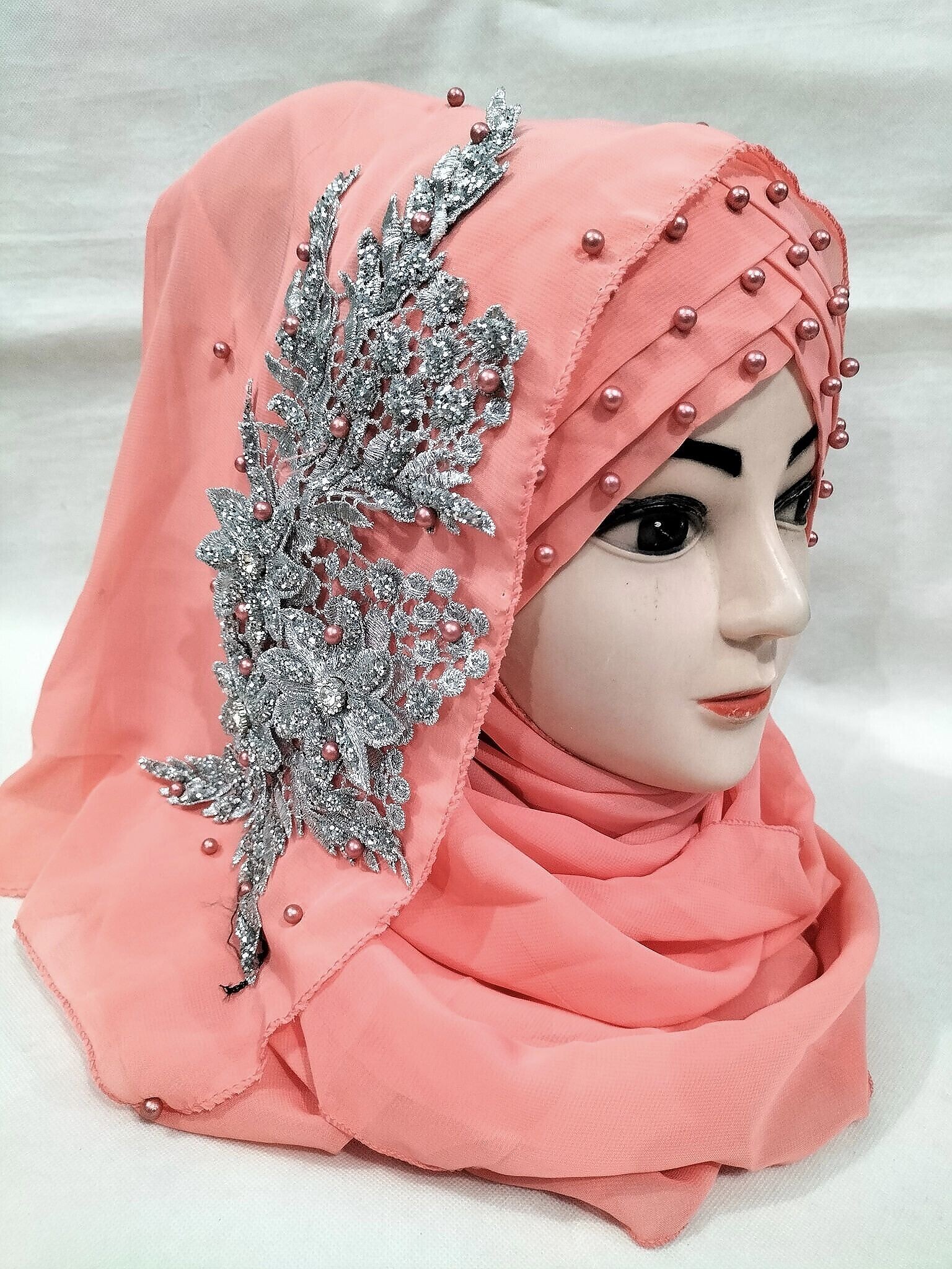Pearl Floral Ready to Wear with Silver Bunch – Coral Pink