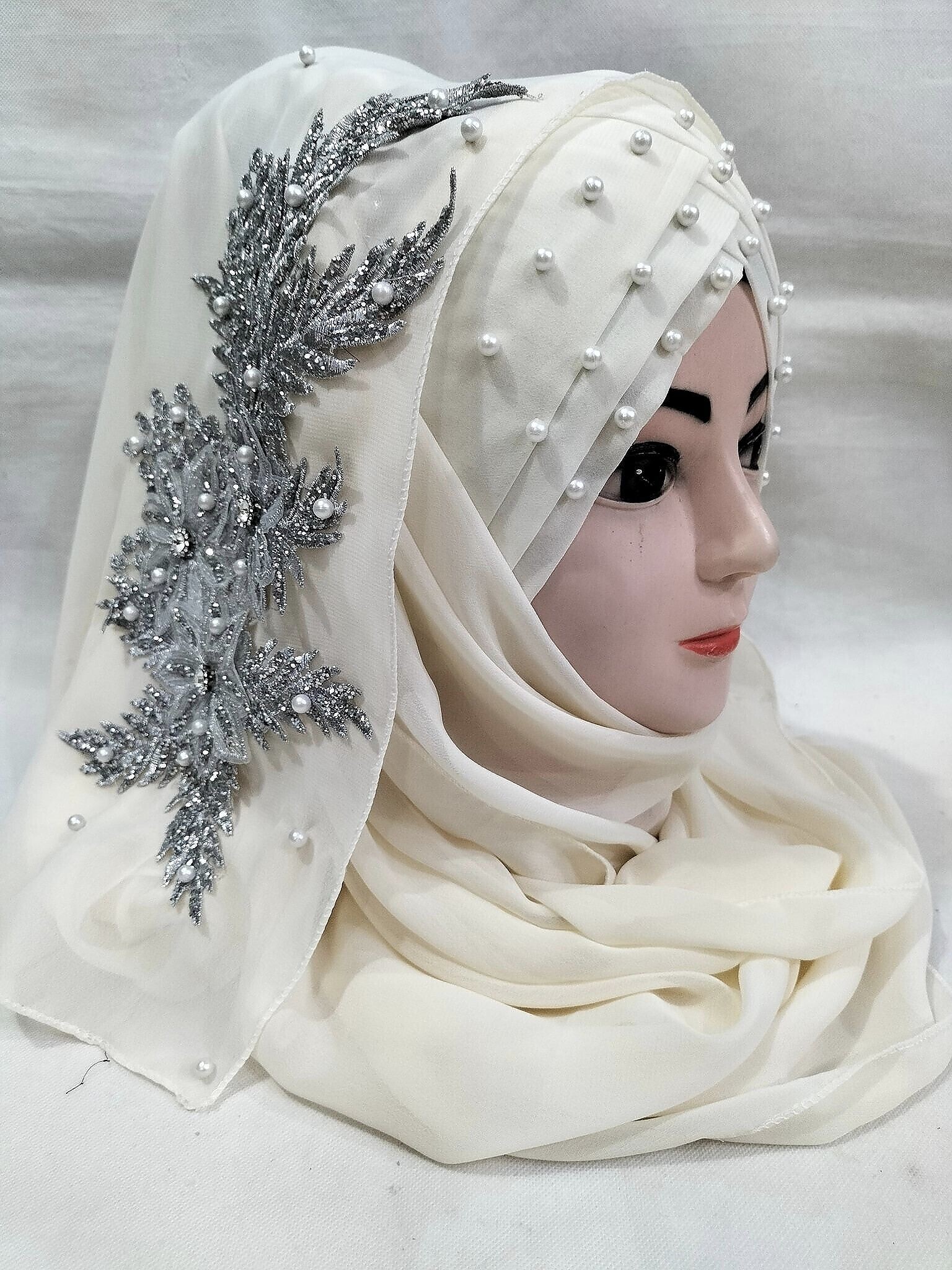 Pearl Floral Ready to Wear with Silver Bunch – Cream