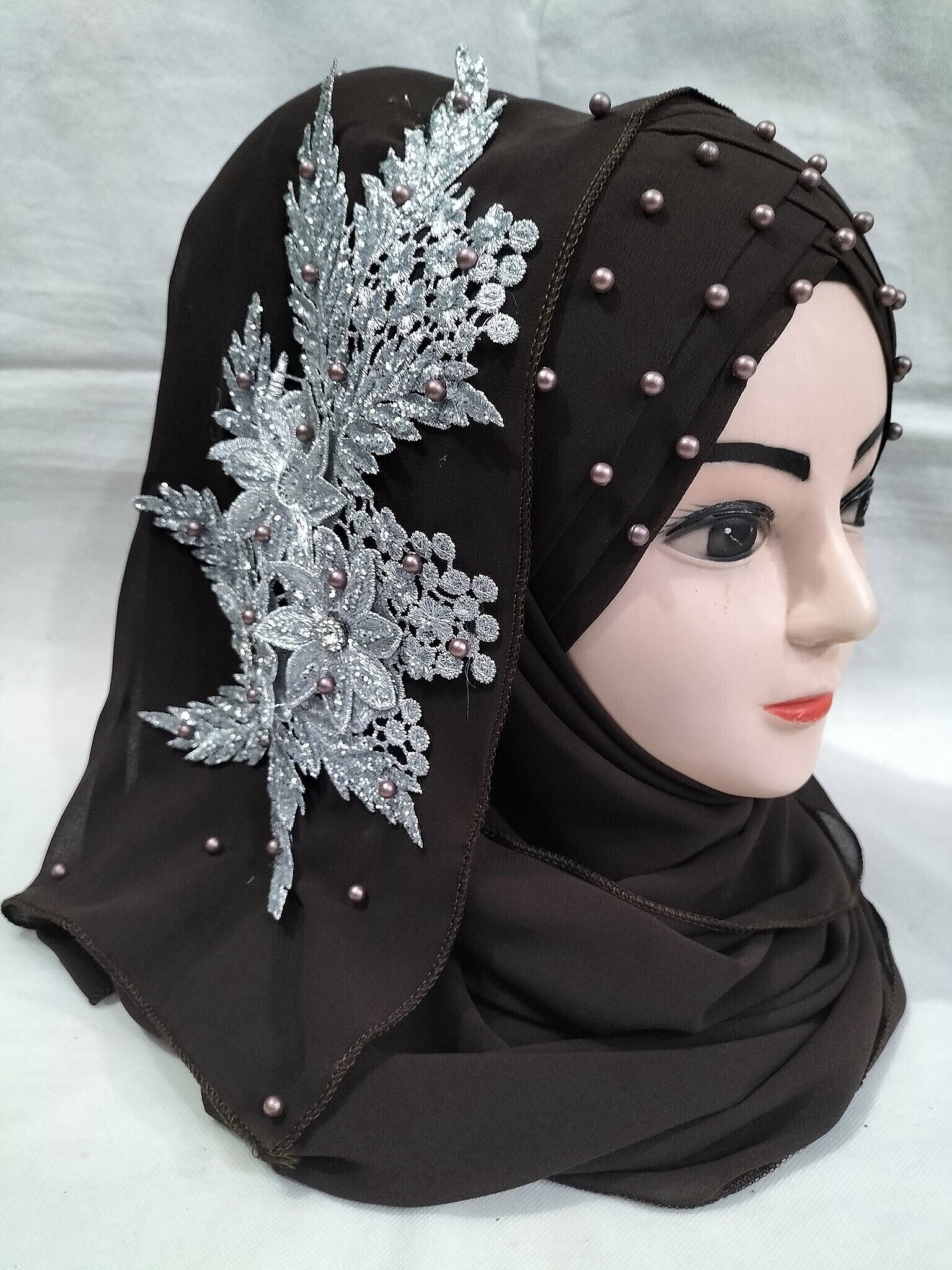 Pearl Floral Ready to Wear with Silver Bunch – Dark Brown