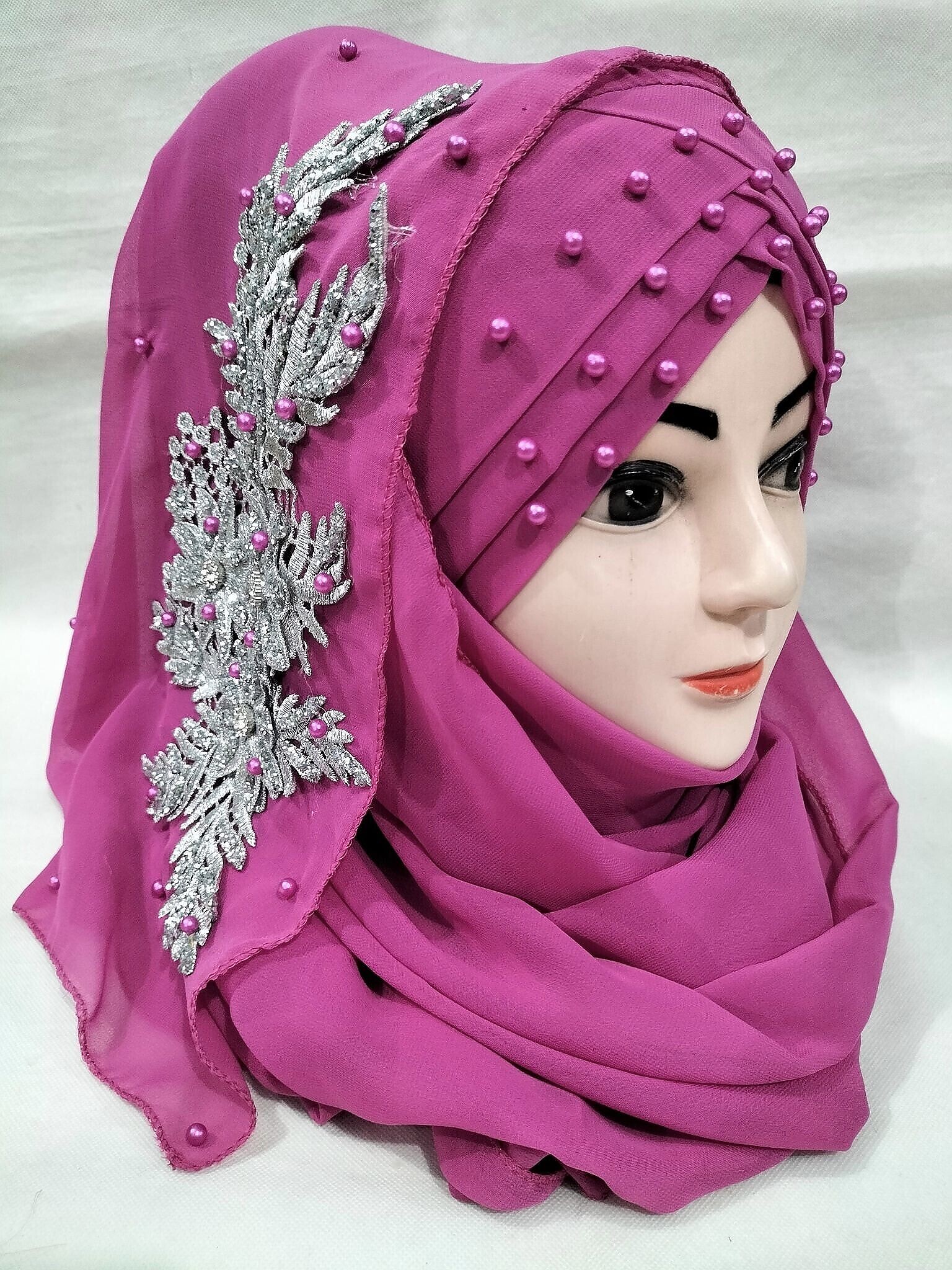 Pearl Floral Ready to Wear with Silver Bunch – Deep Pink