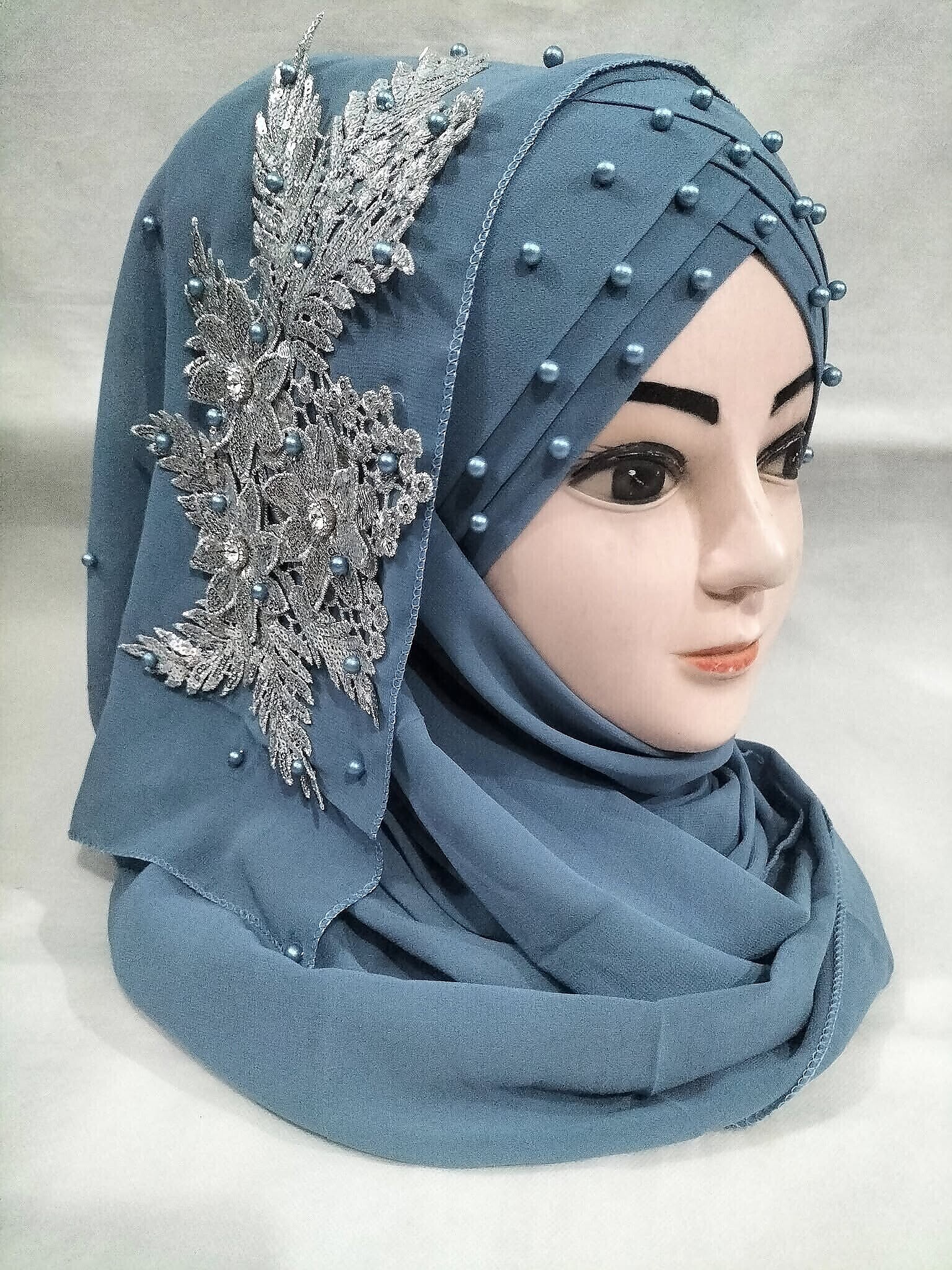 Pearl Floral Ready to Wear with Silver Bunch – Design 2 – Steel Grey