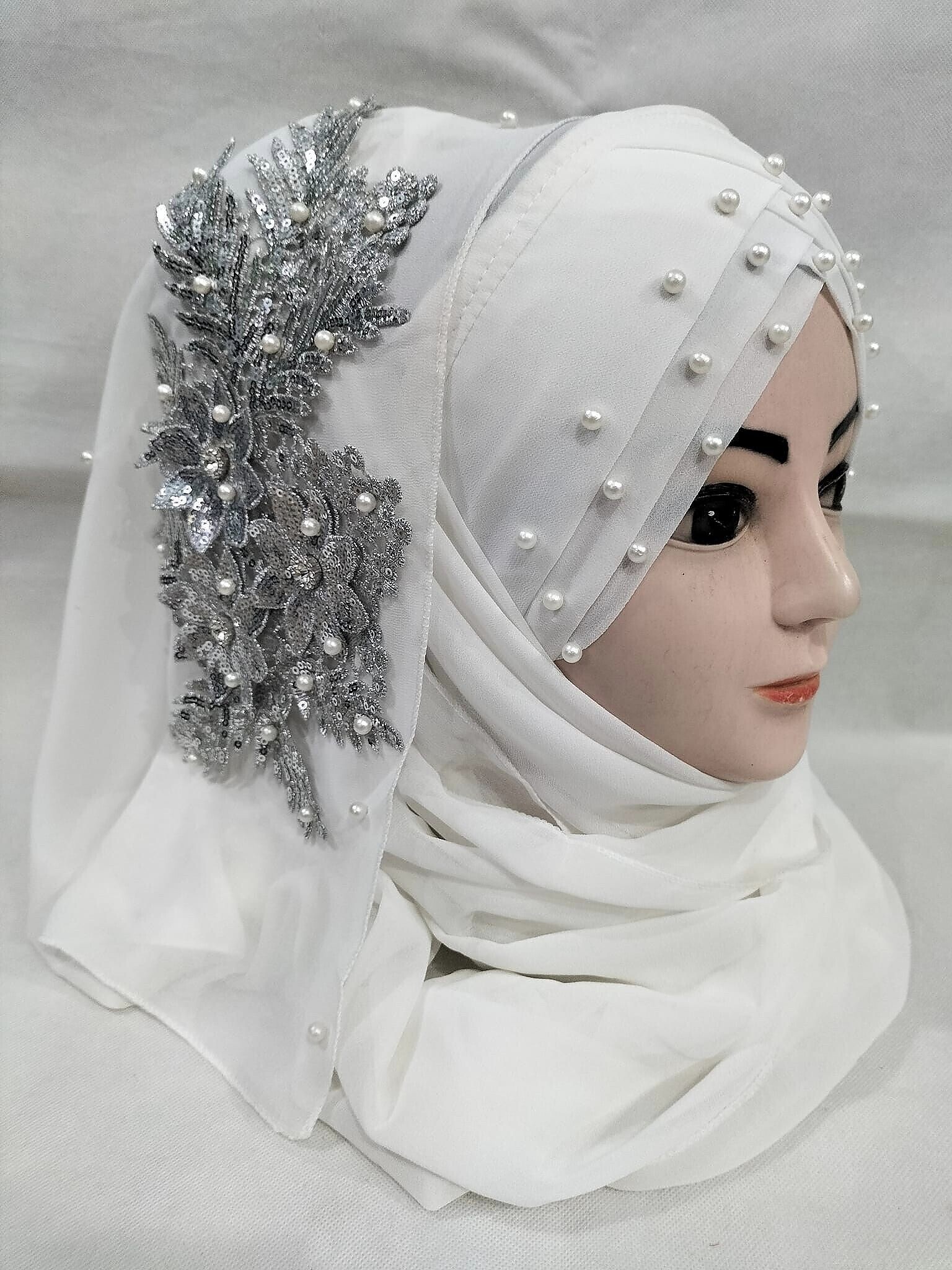 Pearl Floral Ready to Wear with Silver Bunch – Design 2 – White